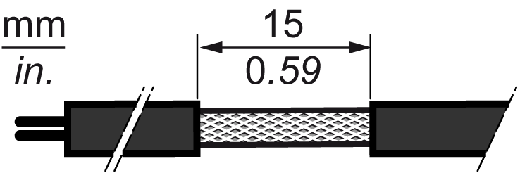 剥开 15 毫米(0.59 英寸)长的屏蔽。 |