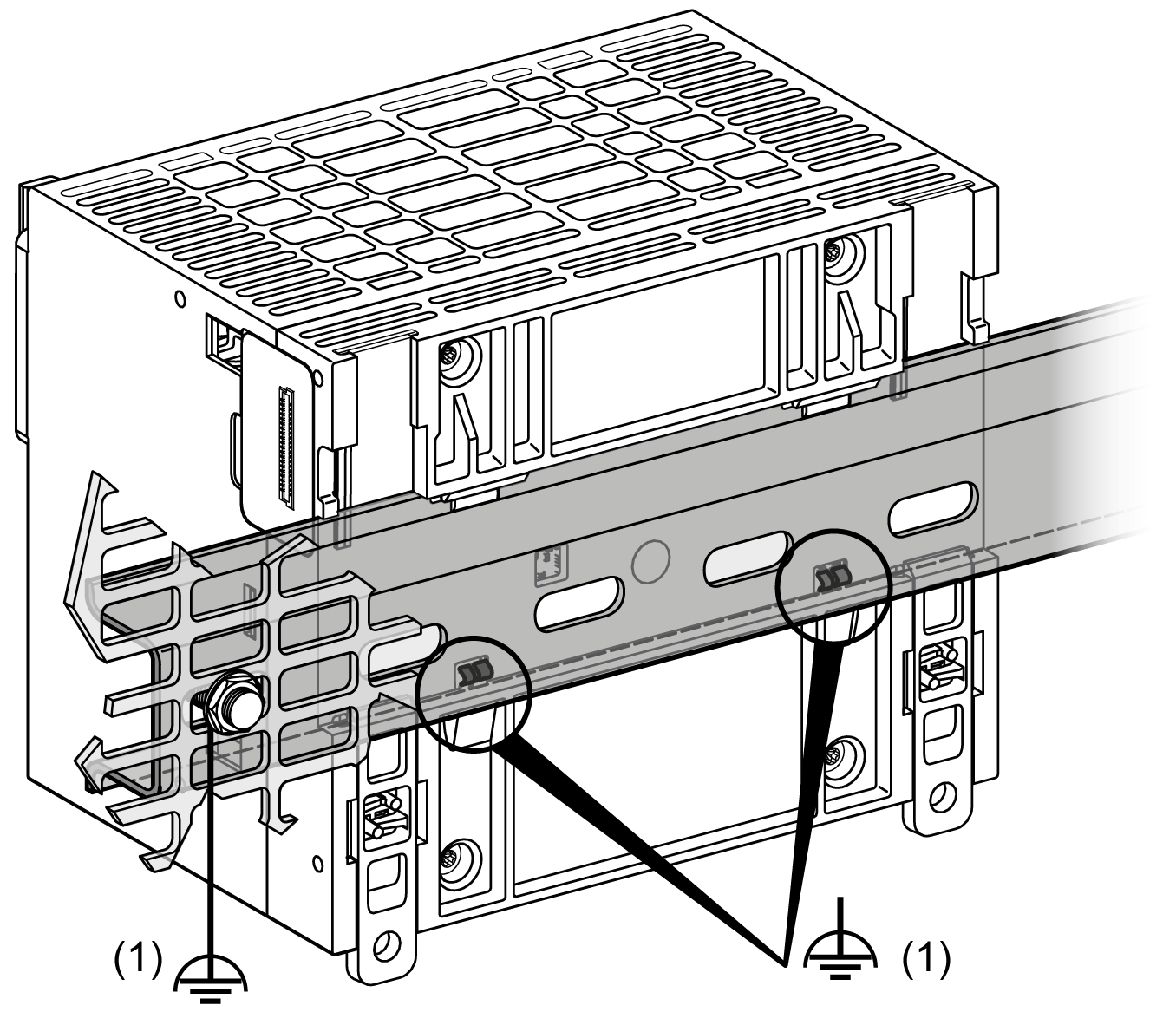 M262 Logic/Motion Controller 控制器的 DIN 导轨是公共的功能性接地 (FE) 平面,必须安装在导电背板上。