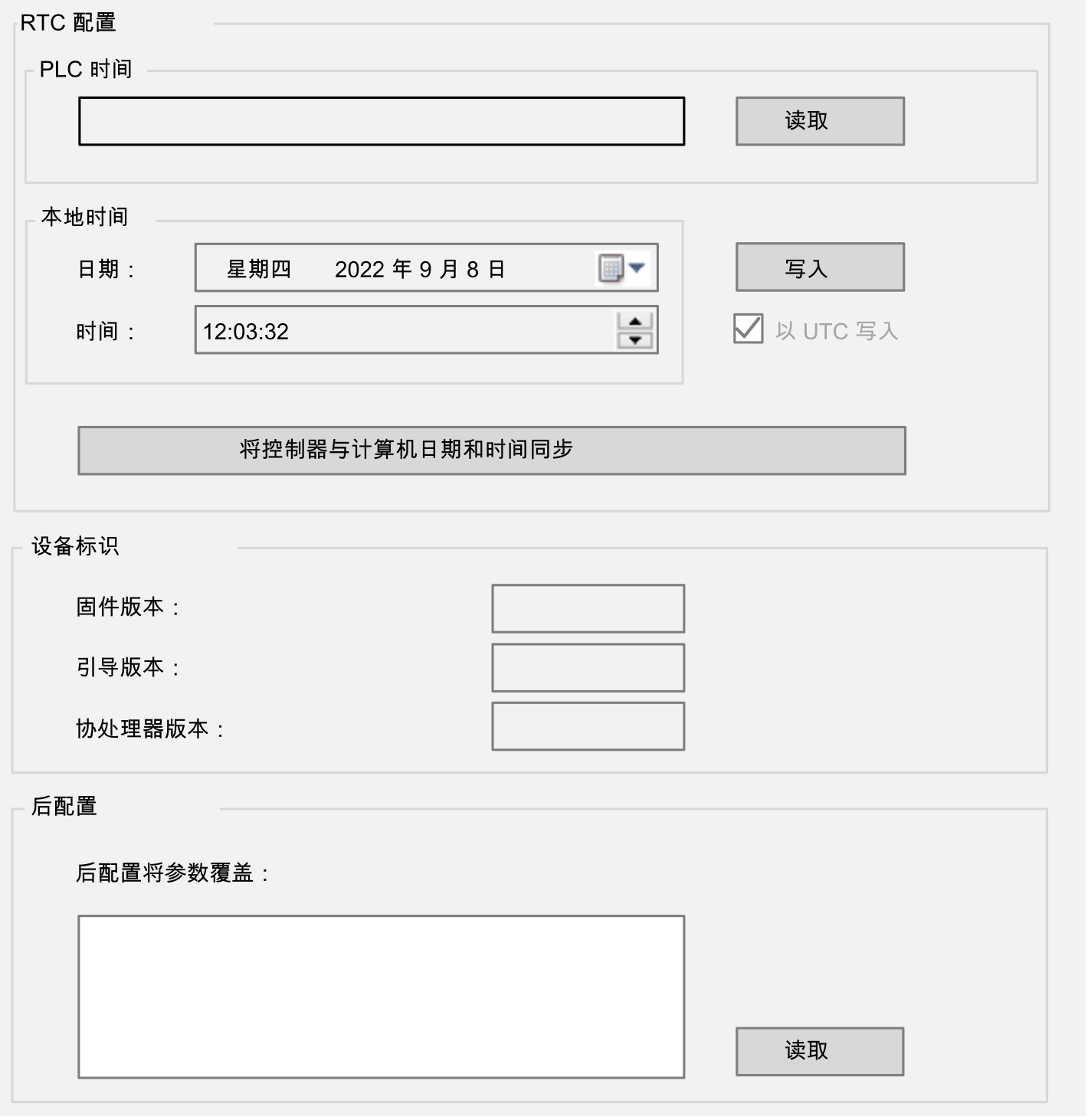 向控制器写入计算机的日期和时间。这些值在写入前会转换为 UTC 格式。 |