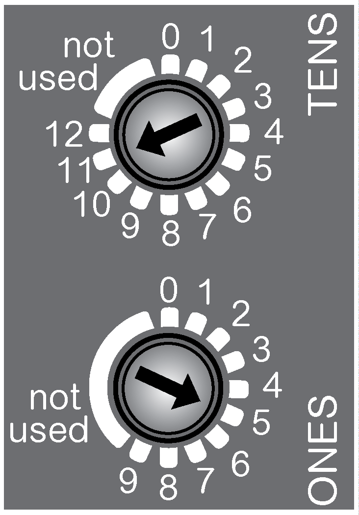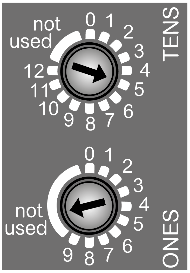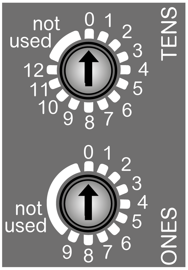 将 ONES 旋转开关设为六个未编号的位置中的任意一个 (not used) 以使用 TENS 旋转开关设置特定的波特率。