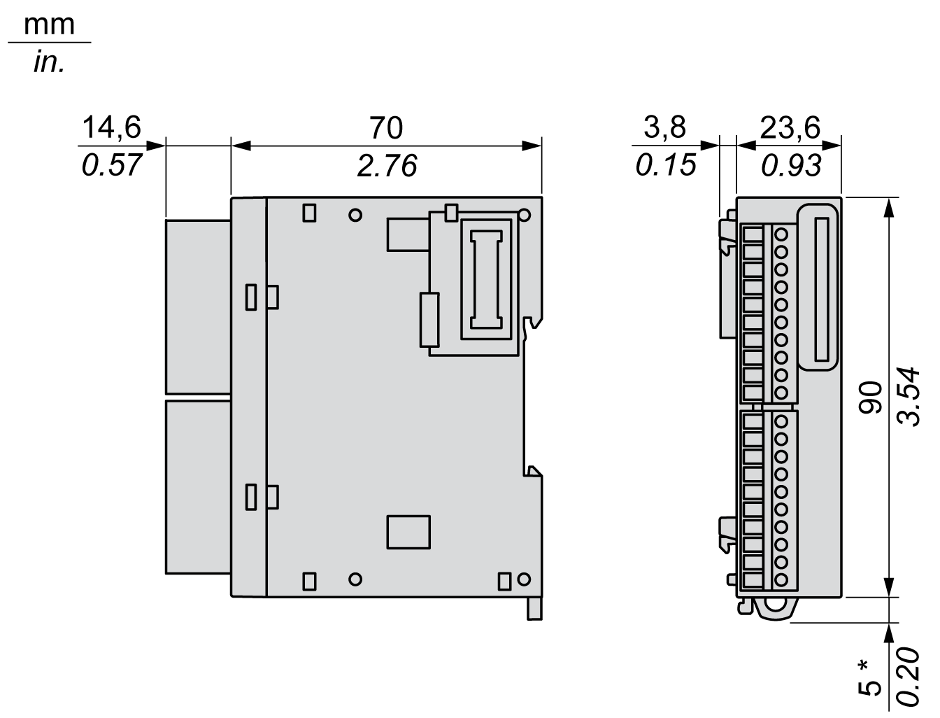2 个端子上 1 个公共端,用于 16 个通道 |