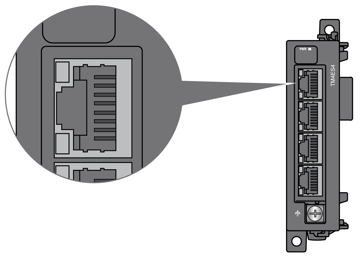 TM4ES4 模块配备了 4 个以太网 RJ45 连接器: