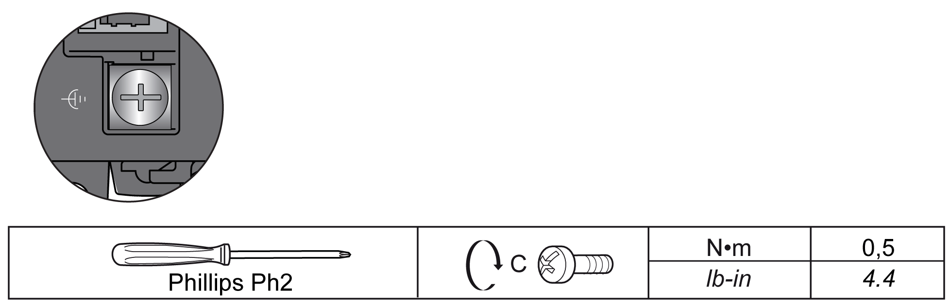 下表显示了要用于所提供的功能性接地 (FE) 电缆的螺钉的特征: