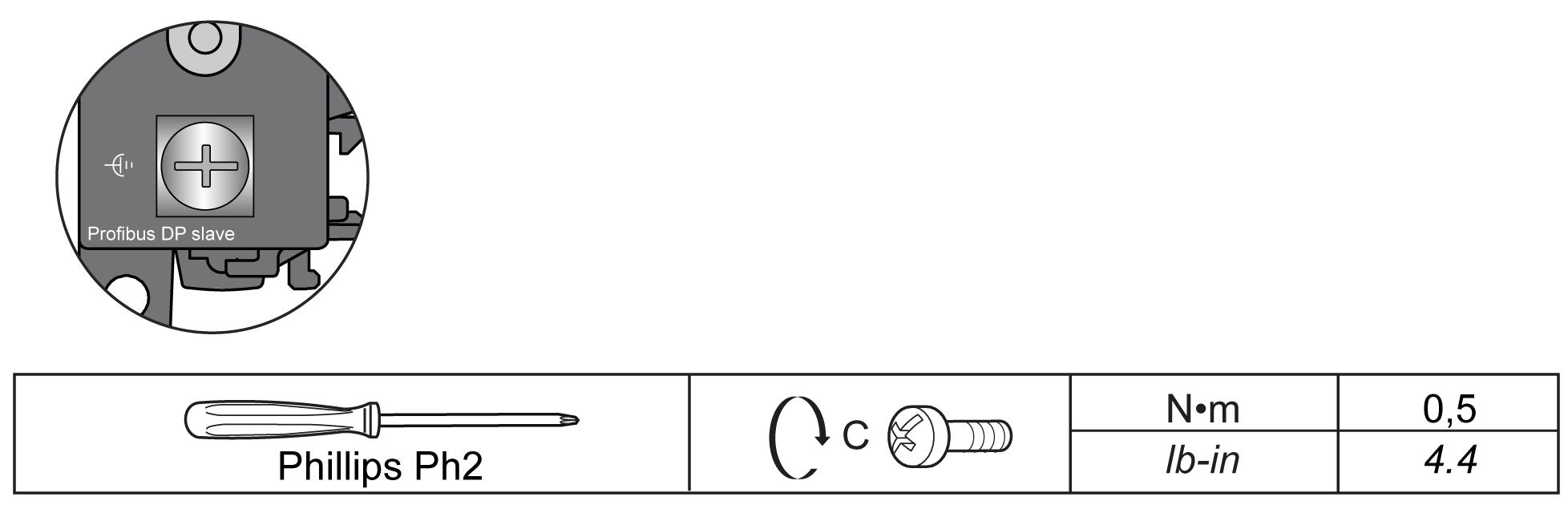 下表显示了要用于所提供的功能性接地 (FE) 电缆的螺钉的特征: