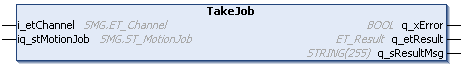 Mit der Methode IF_MovePureSmg - TakeJob werden dem SoMotionGenerator Fahraufträge zugewiesen. Der Carrier wird mit der Geschwindigkeit, Beschleunigung und dem Ruck, die im entsprechenden Fahrauftrag im SoMotionGenerator definiert sind, auf ein gegebenes Ziel bewegt. Die mit der Methode SetMotionParameter eingestellten Parameter werden nicht berücksichtigt.