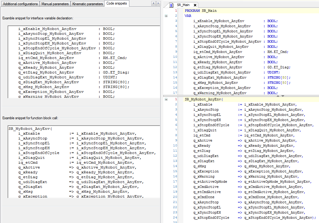 Copy the code snippets of the Robot Explorer) to the desired location in your application code. tab (refer to |