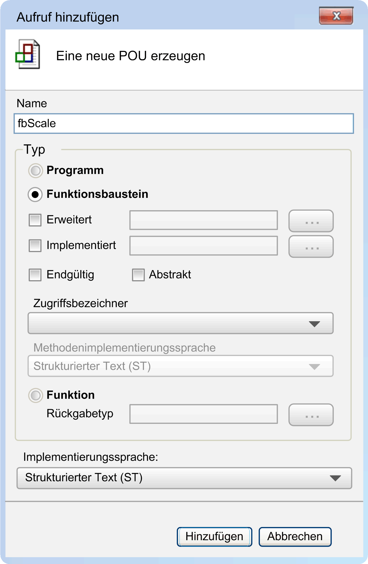 hinzufügen.Folgende Typen von POU-Objekten sind vorhanden: