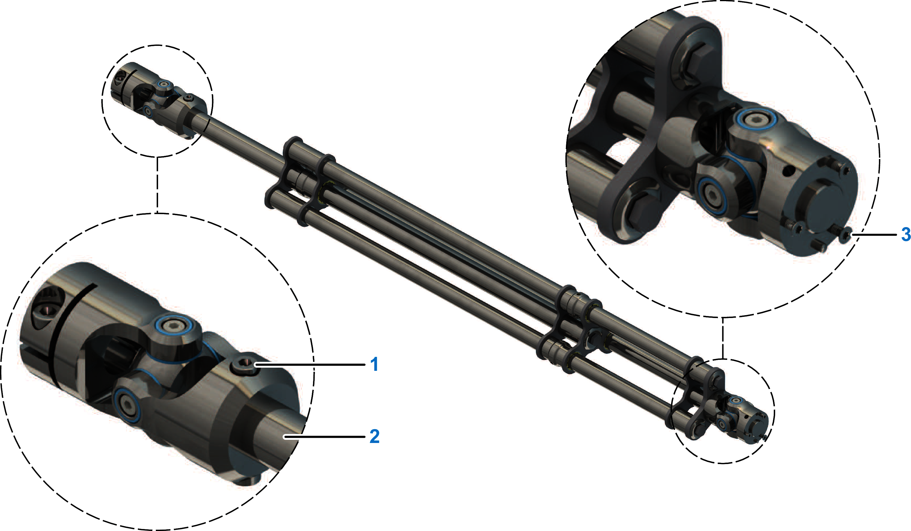 The following procedures describe the replacement of the universal joints of the telescopic axis as an example. The steps for the Telescopic Axis Double are similar.