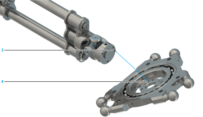 Place the parallel plate on the bottom universal joint as shown in the following figure and ensure that the locating pin (3) is in alignment with the corresponding hole of the parallel plate (4).
