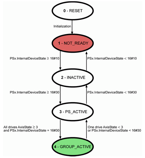 Displays the operating state of the power supply and the connected drives (also refer to InternalDeviceState).