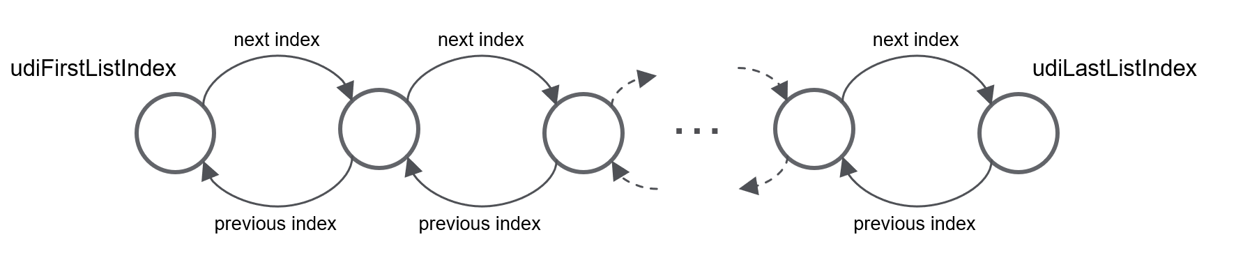 The list of targets is implemented as a doubly linked list. That means that you can navigate through the list of targets in two directions: from udiFirstListIndex to udiLastListIndex or from udiLastListIndex to udiFirstListIndex: