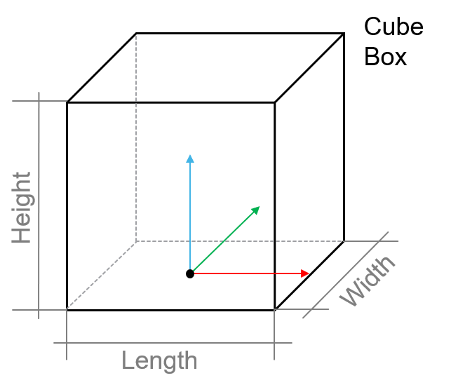 For the Cube shape and the Box shape, you can describe the outer dimensions with the parameters lrLength, lrWidth and lrHeight. The wall thickness of a box is set to 0.3 mm.