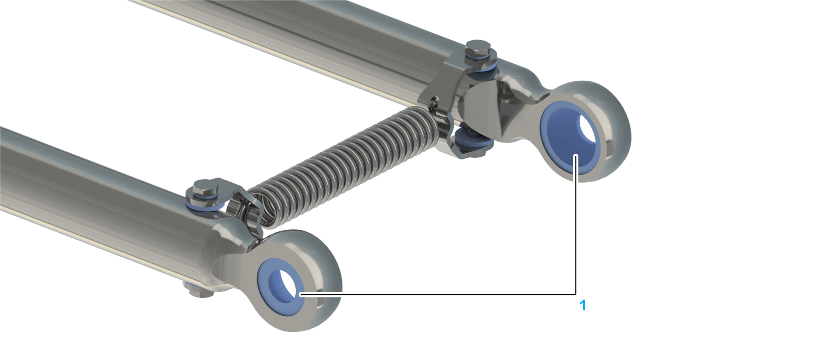Attach a total of two springs per lower arm pair, one at the lower end, one at the upper end. |