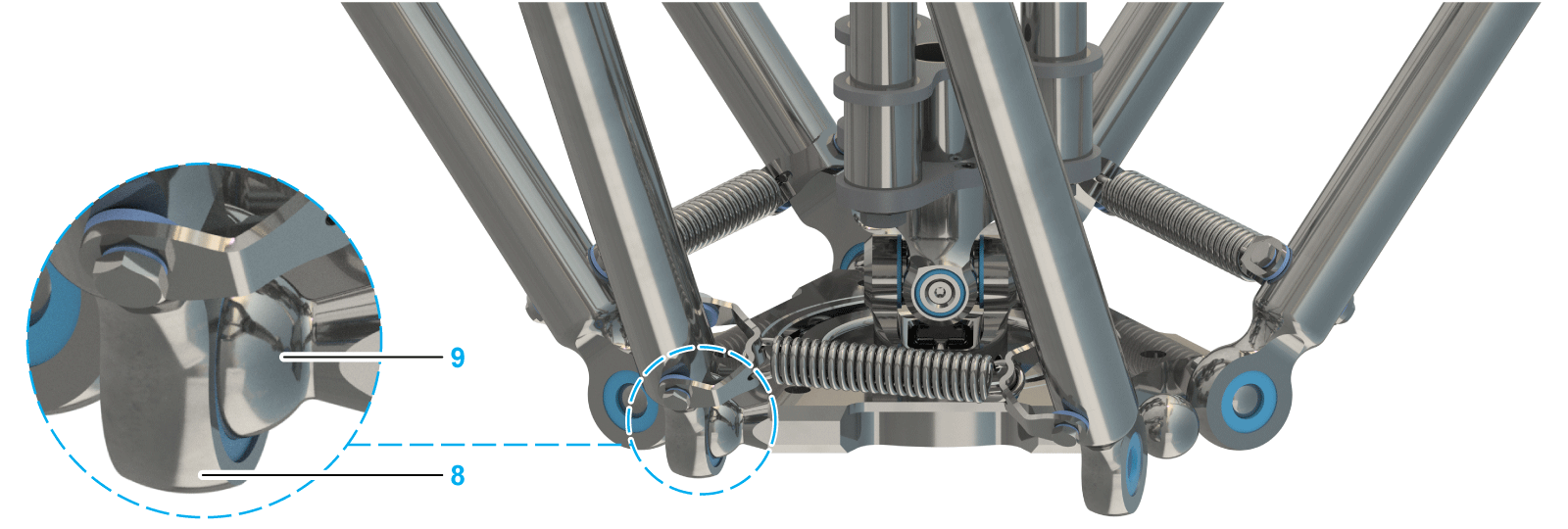 Use the figure above to verify the correct alignment of the lower arm heads and the ball sockets (3). |
