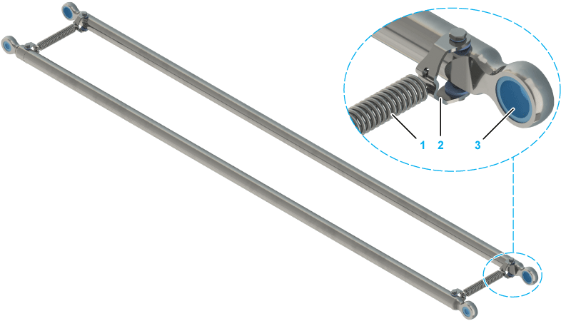 Verify that the springs (2) are embedded in the spring brackets (3). ![]() |