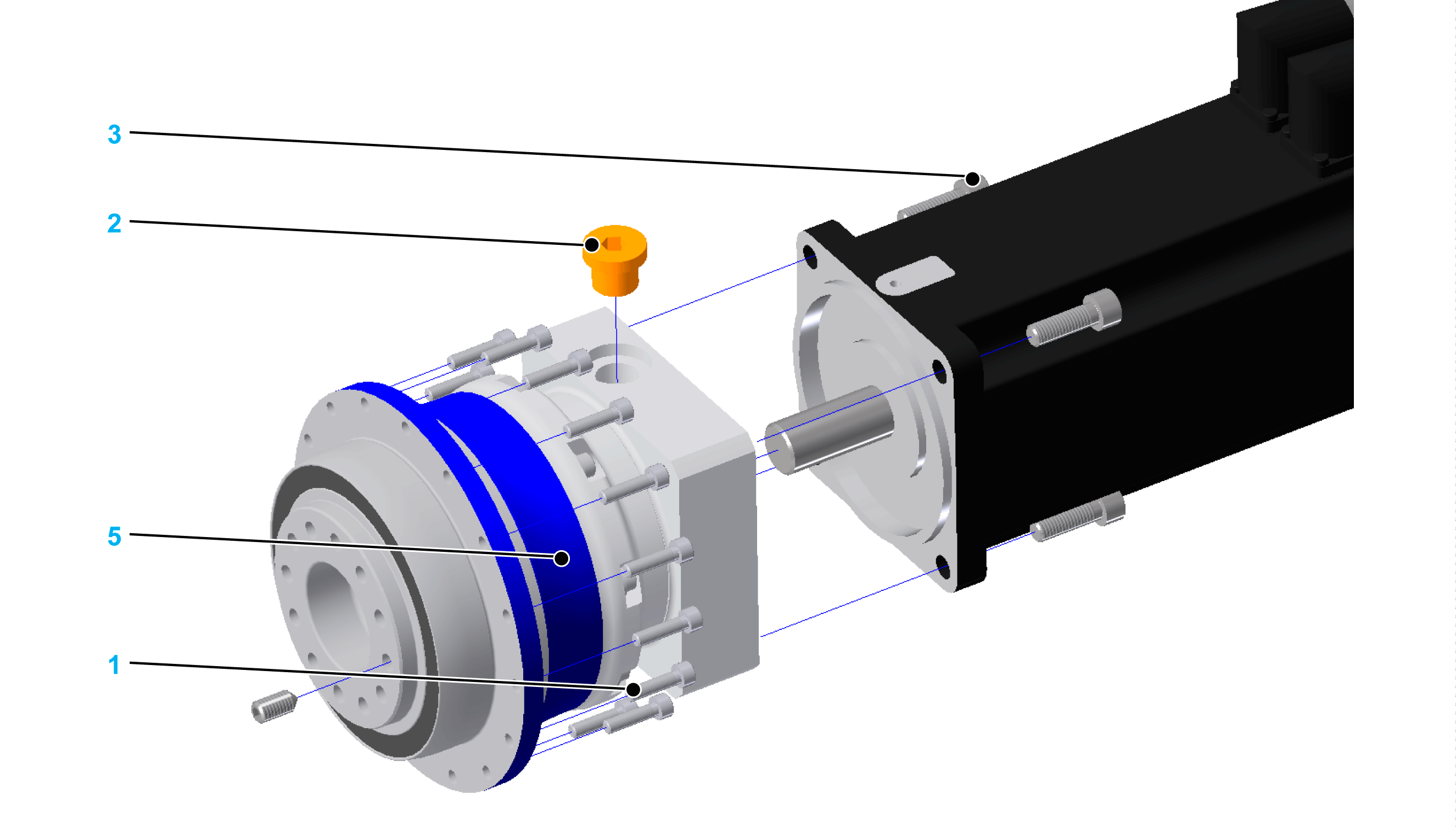 Attach the motor to the gearbox according to the specifications of the manufacturer. Tightening torques for VRKT1: