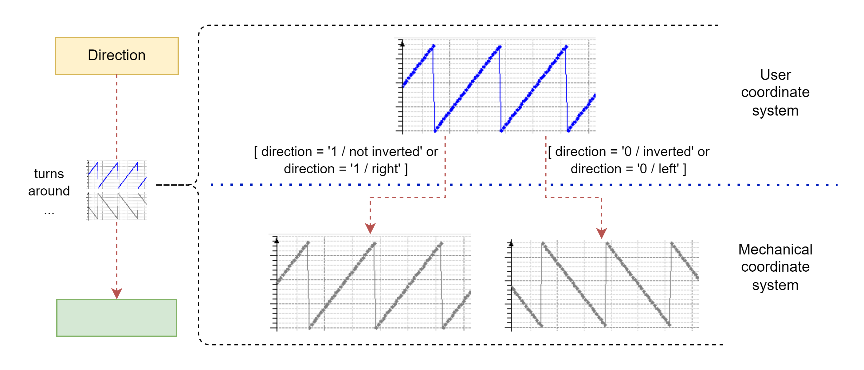 Direction inverts the relation between the user coordinate system in