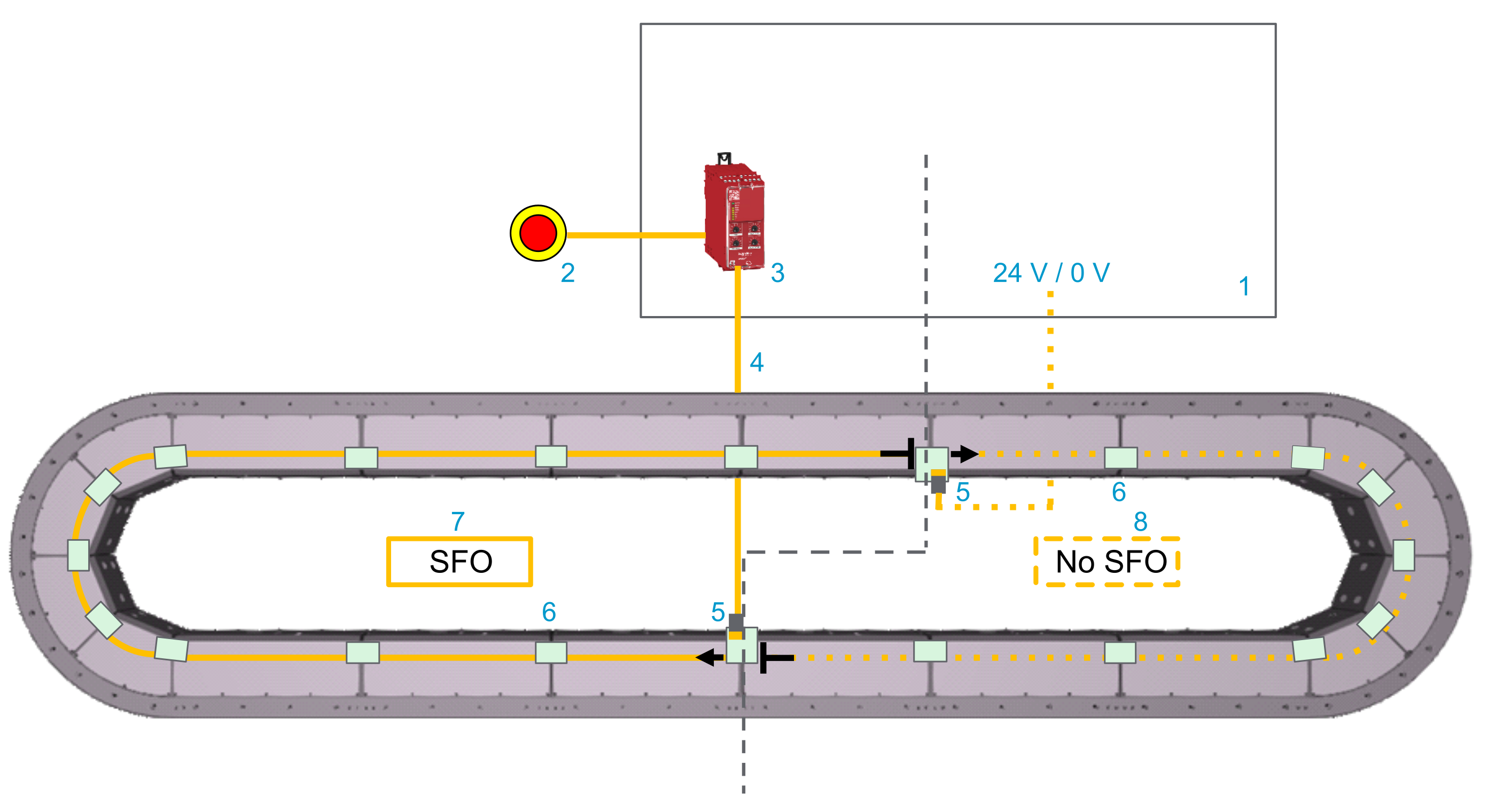 If the transition of carriers from a section of the track that does not use the SFO function to a section of the track with SFO function poses a hazard to your personnel or equipment, you must take appropriate measures (refer to Hazard and Risk Analysis).