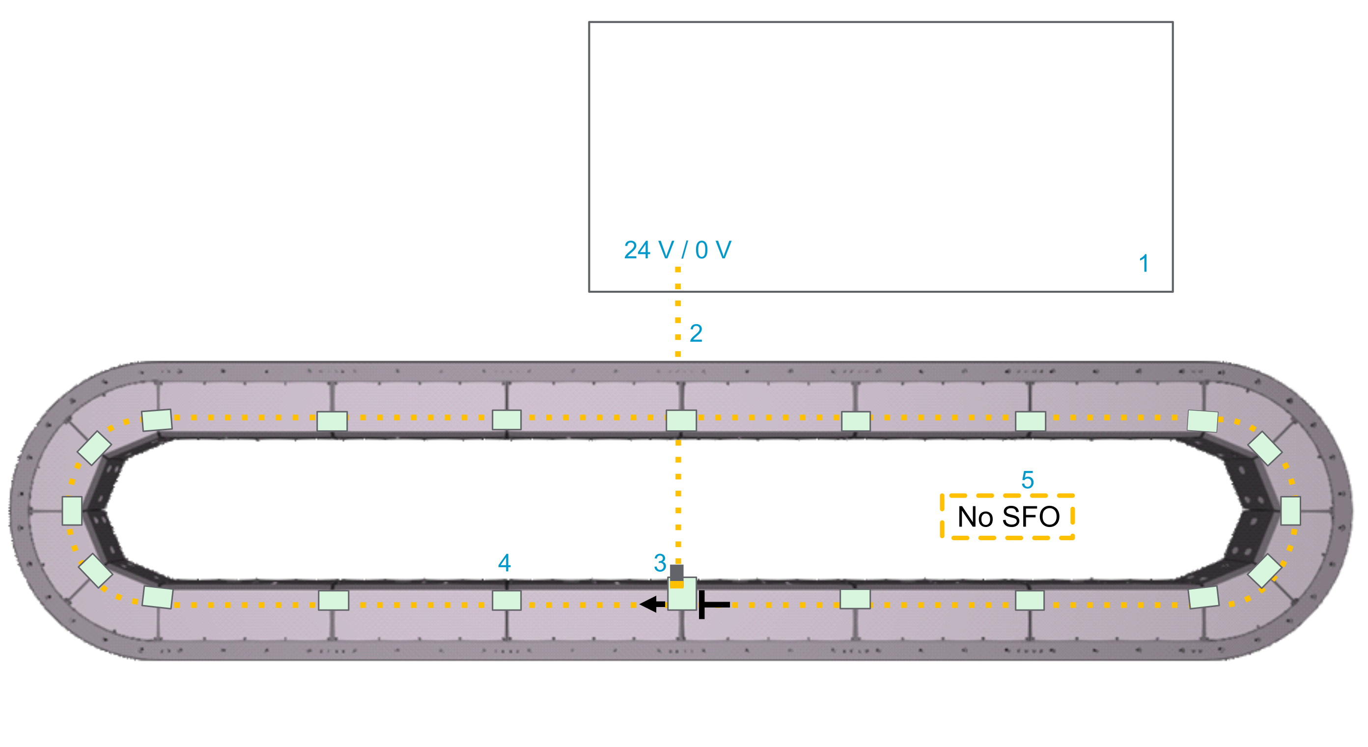 Even if you do not use the SFO (Safe Force Off) function in your track or in a group of segments of your track, you must supply 24 Vdc to the track permanently.