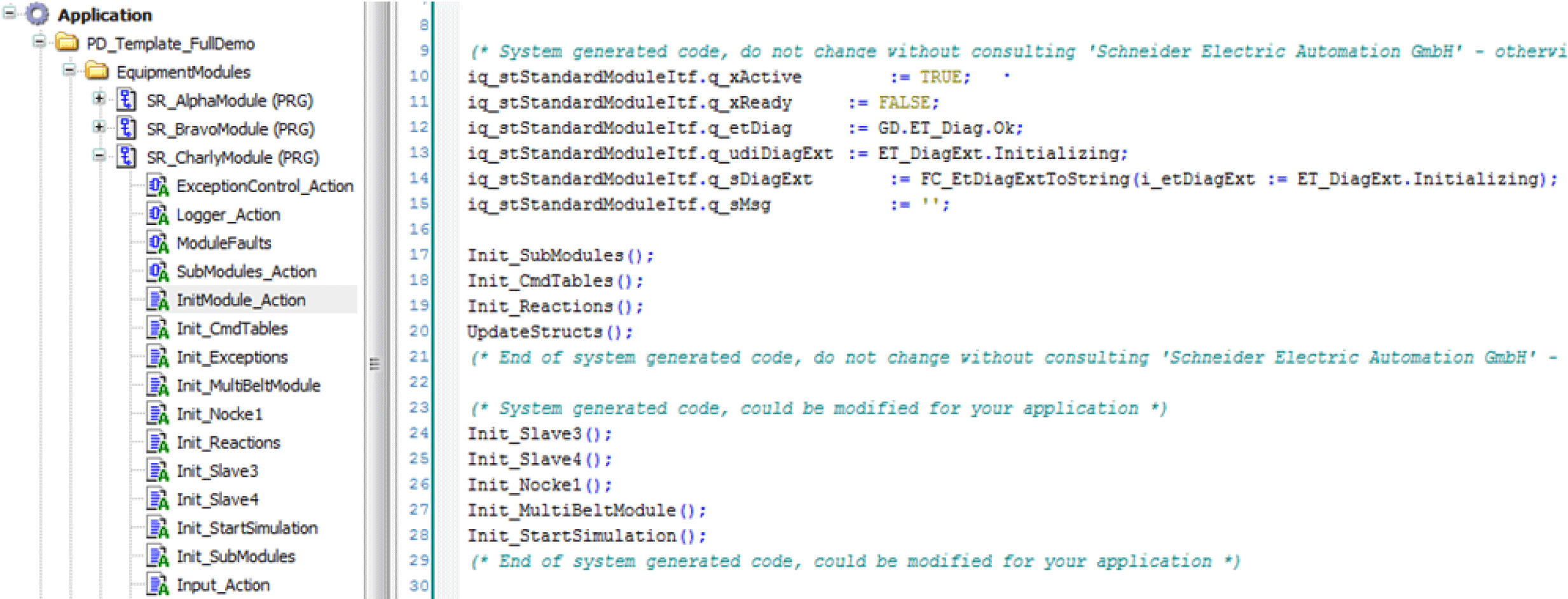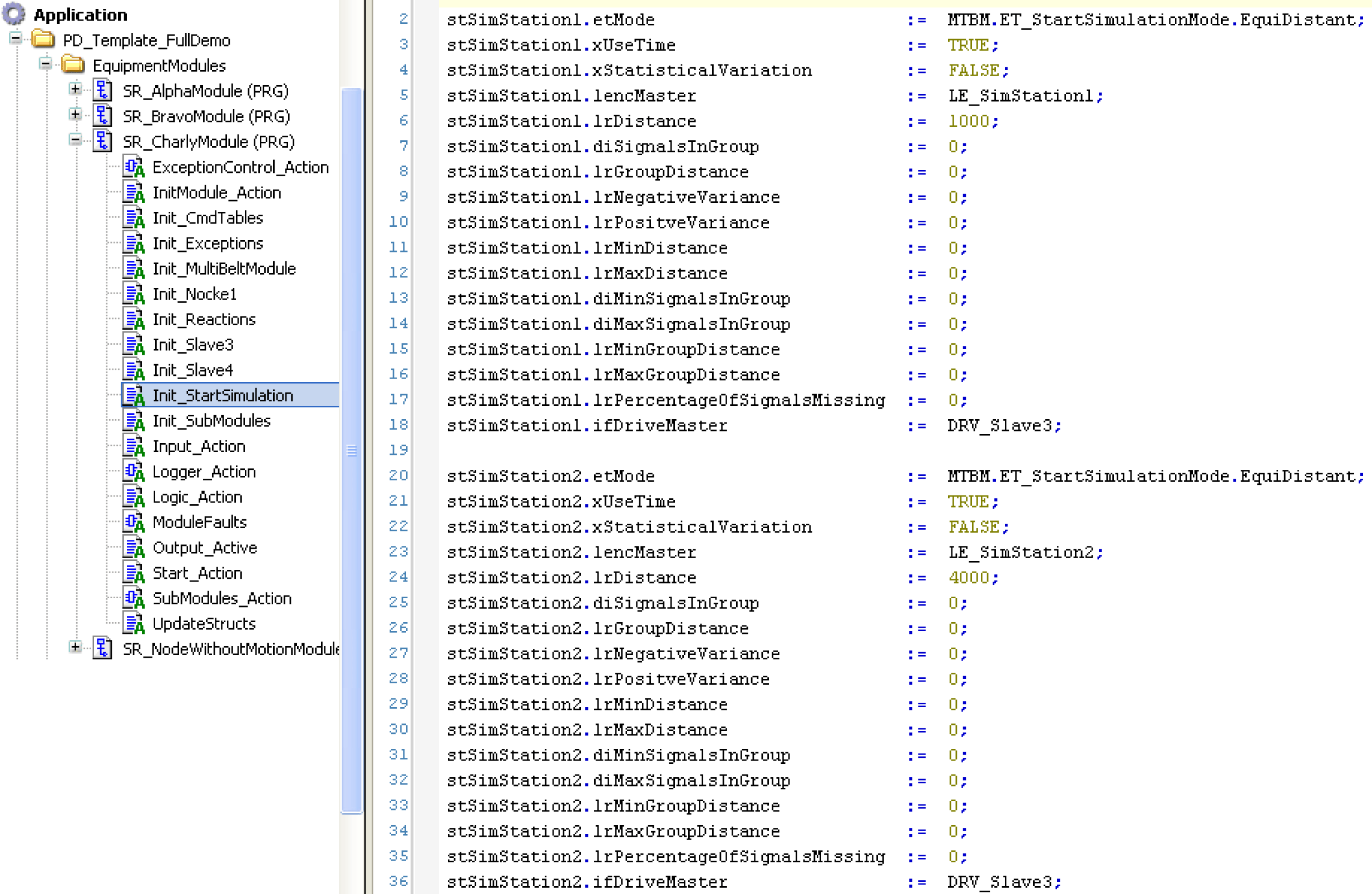 • Then, call up LE_SimStation1 and LE_SimStation2 in the action InitModule_Action.