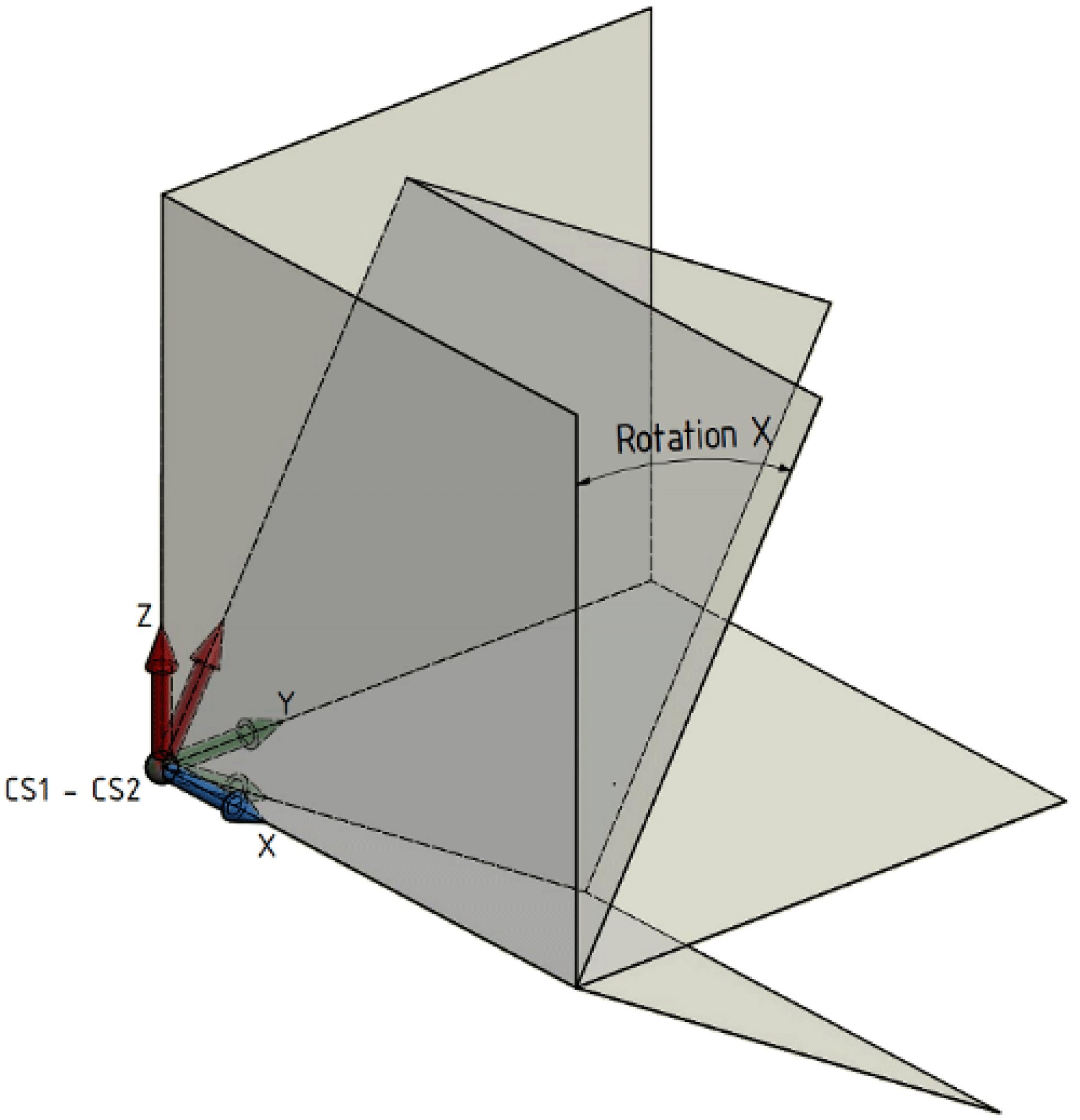 Rotation of the coordinate system CS1 around its X axis. This creates the coordinate system CS2. |