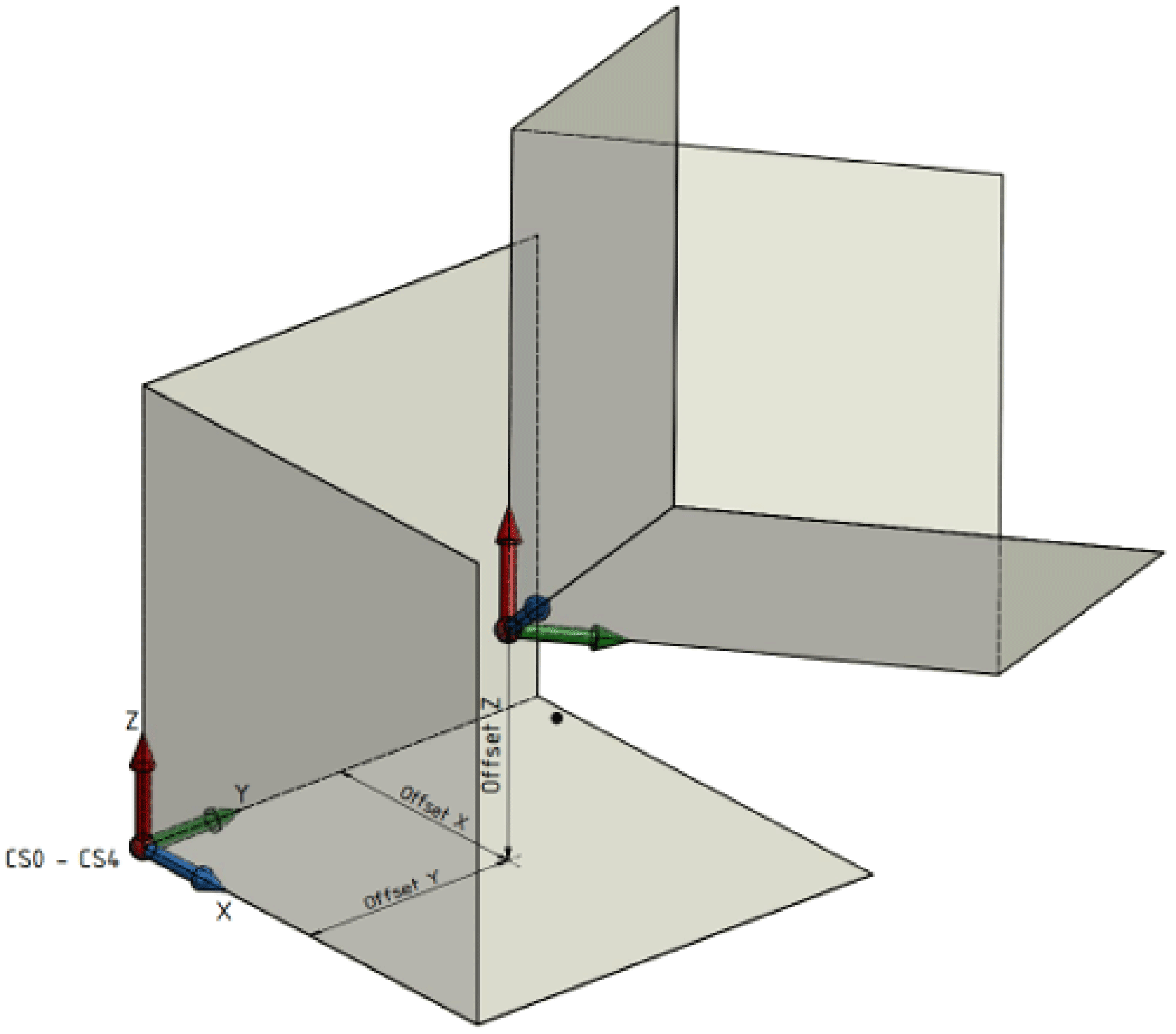 Shifting the coordinate system CS0 with the offsets X, Y, Z. This creates the coordinate system CS1. |