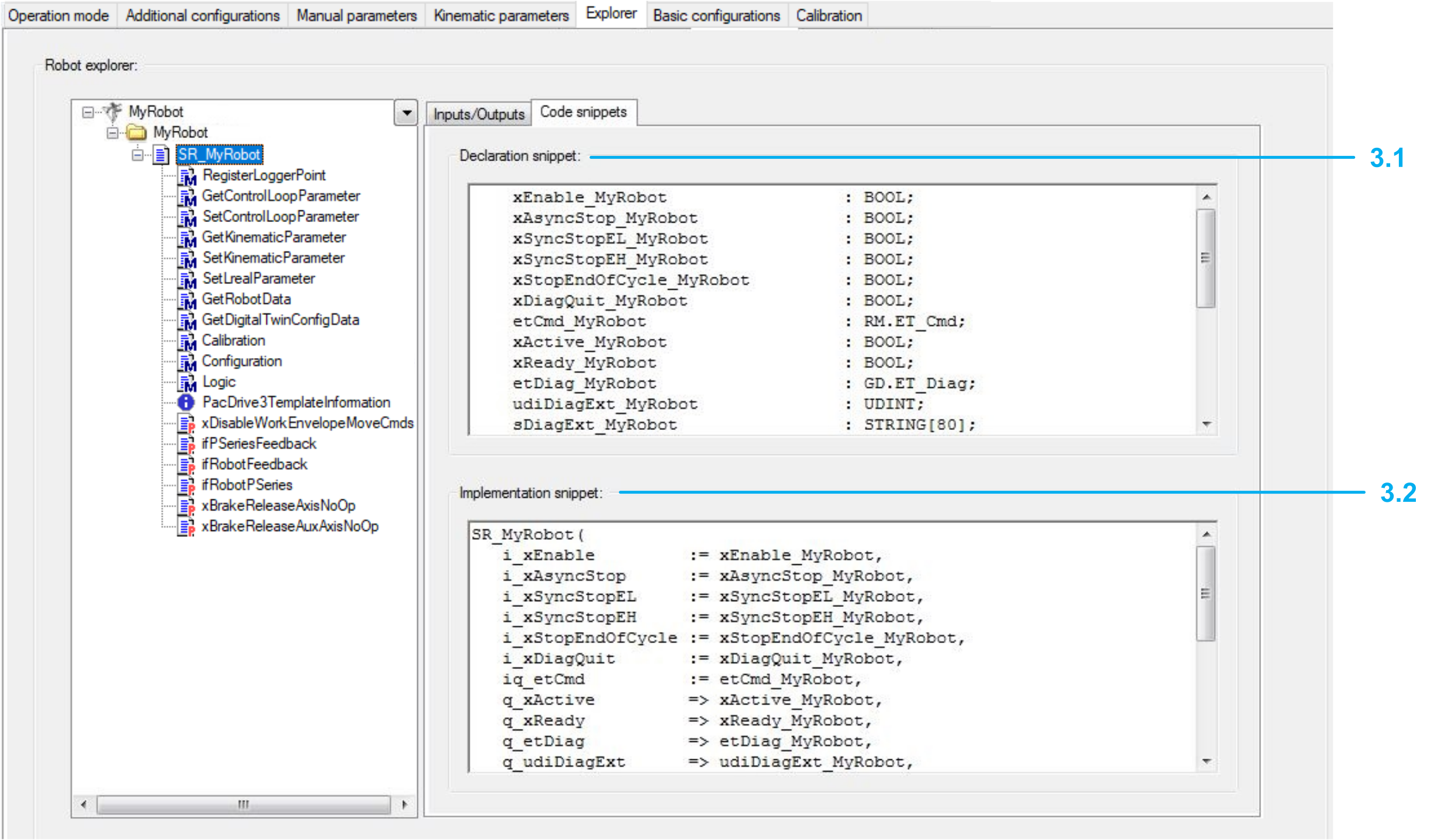 : Copy the code snippets of this tab to the desired location in your application code. Detailed information can be found under: Call robot in your program in chapter Using Robot P-Series. |