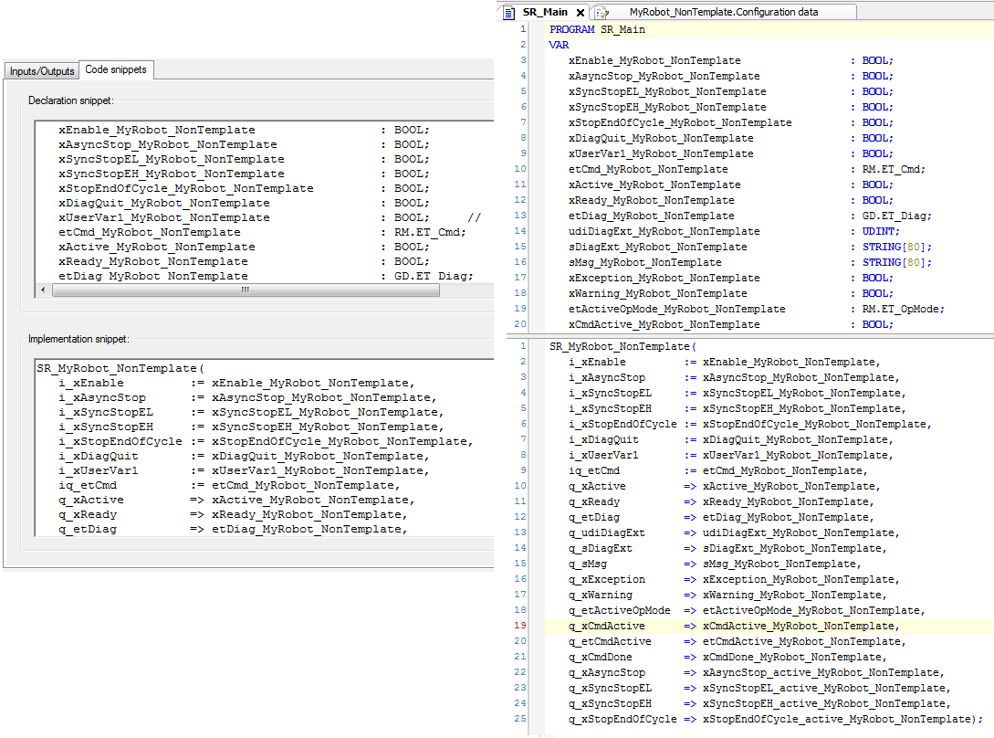 If you are using PacDrive 3 Template, it is typically inside SubModules_Action (of SR_MainMachine or equivalent in a node module) which typically uses the FBD language. To use the code snippets of , you can use the EXECUTE box to add code in structured text. ![]() |