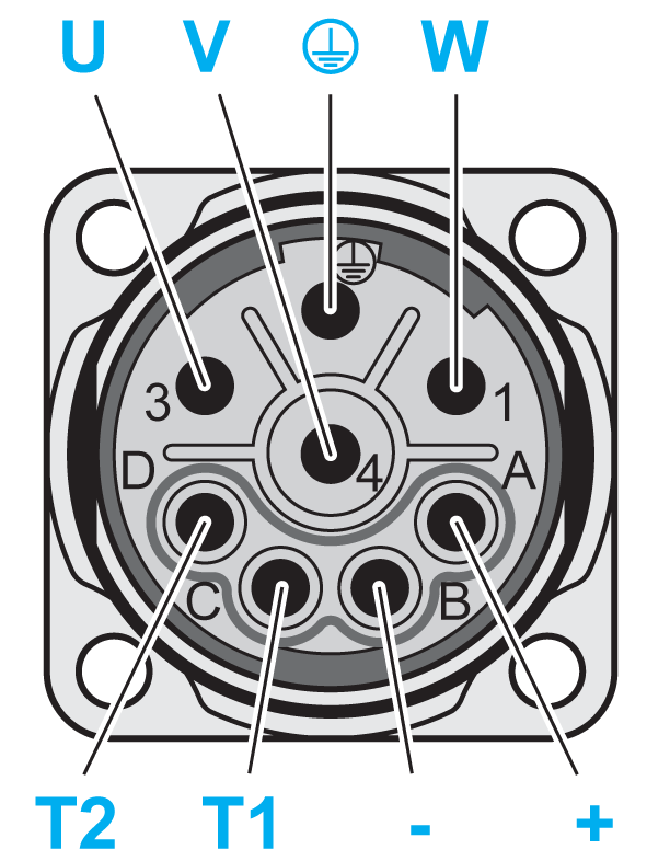 Connection power P30 (size 1): Connection power, brake, and temperature sensor