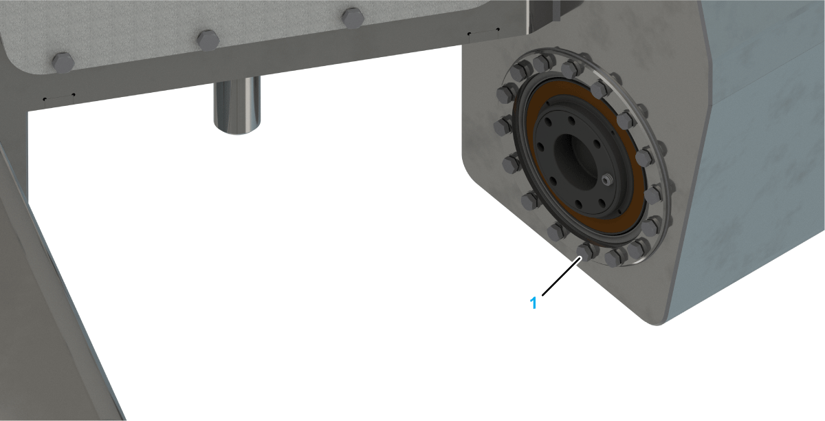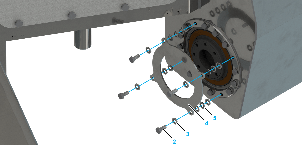 Fasten the Impact Plate with one screw (2) and one sealing washer (3) on each of the four holes. Tightening torque: 3.5 Nm (31 lbf-in) |