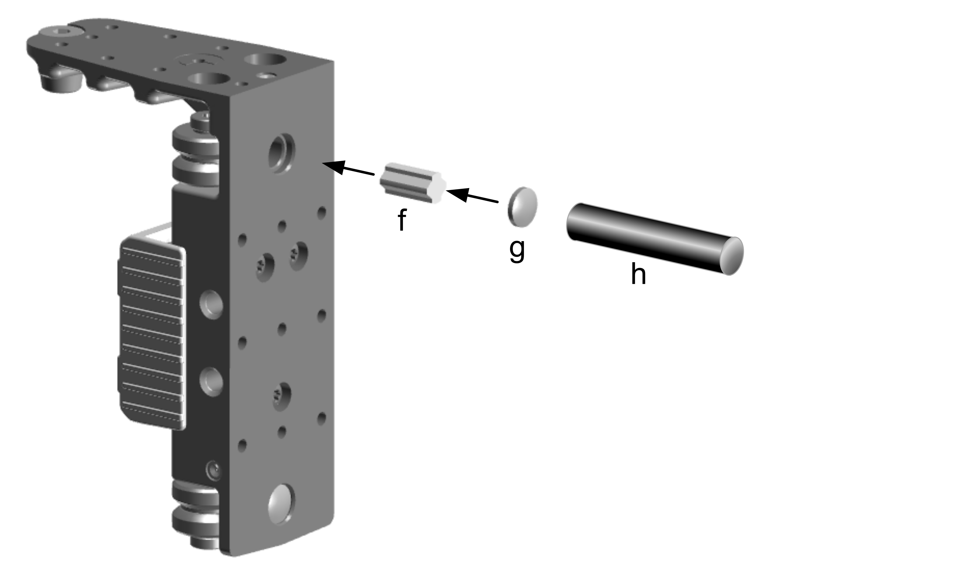 ![]() Insert a new lubrication pad (f) into the carrier and close the hole again with the plug (g). Make sure that the plug is not tilted during insertion. Use a suitable drift punch (h) to press the plug into the carrier body.