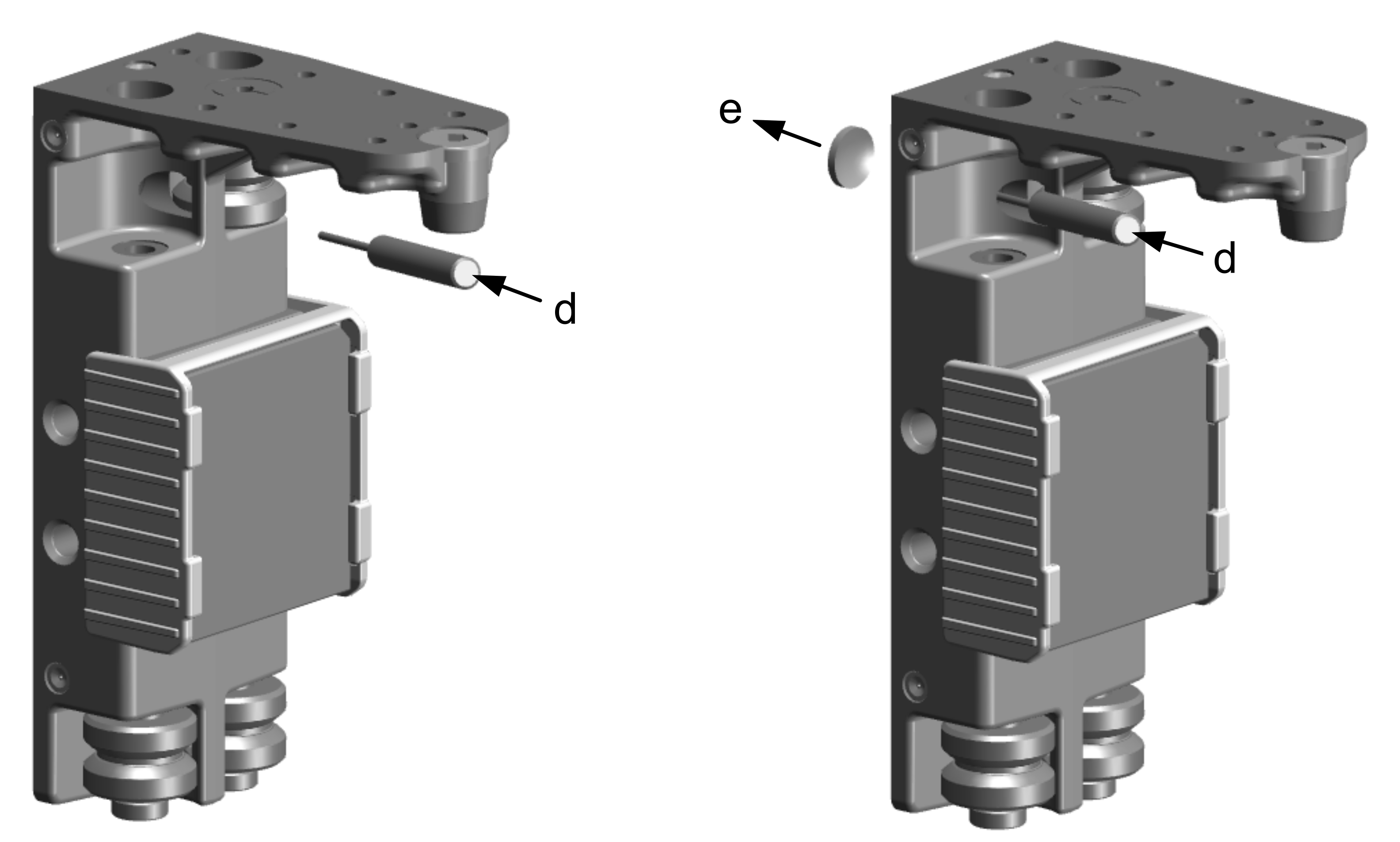 ![]() Use a suitable drift punch (d) to press the plug (e) out of the carrier body.