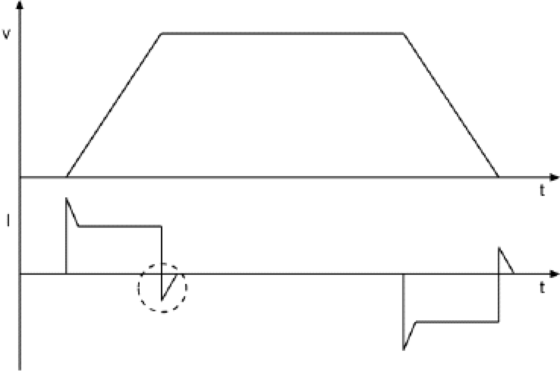 The axis (motor shaft) was braked to test the function, resulting in a rise in current and an increase in torque. The figure shows the current increase (or torque increase) and the triggering of the diagnostic message (vertical dotted line).