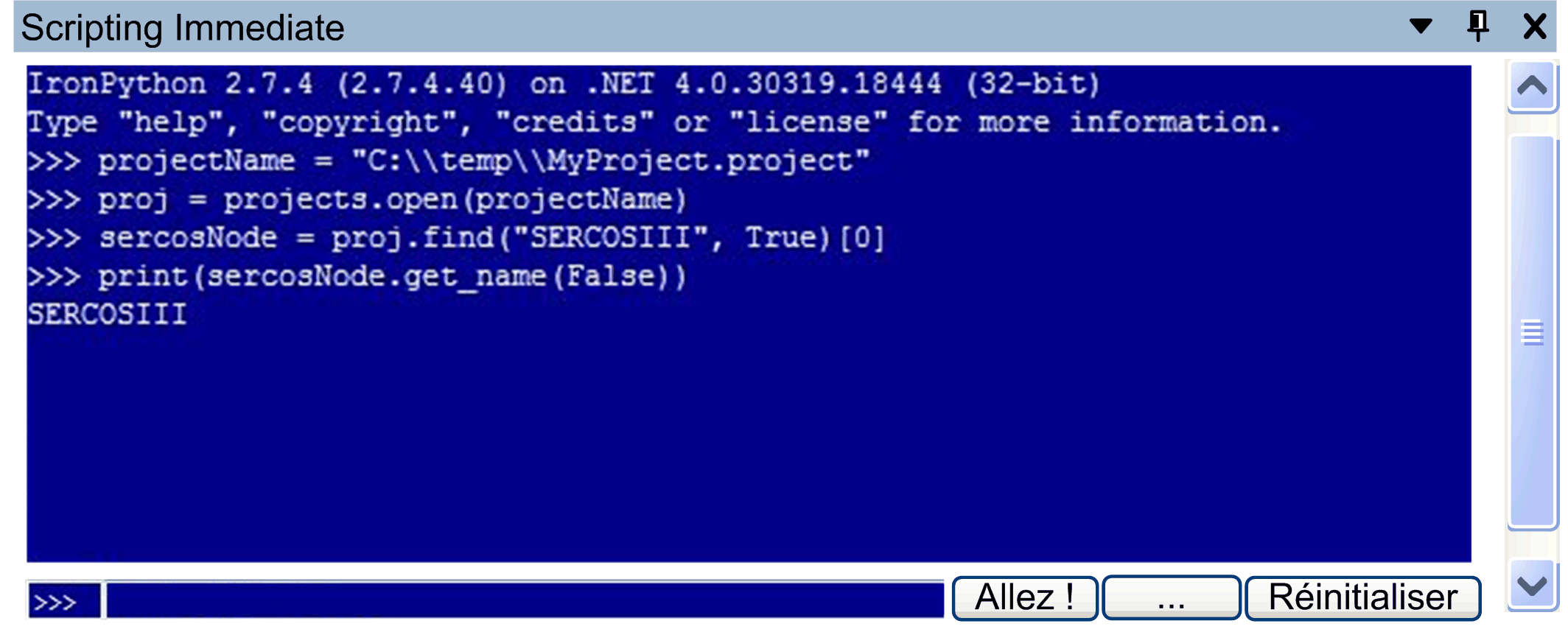 Exécution de script dans l'interface utilisateur EcoStruxure Machine Expert via la commande ou via la vue :