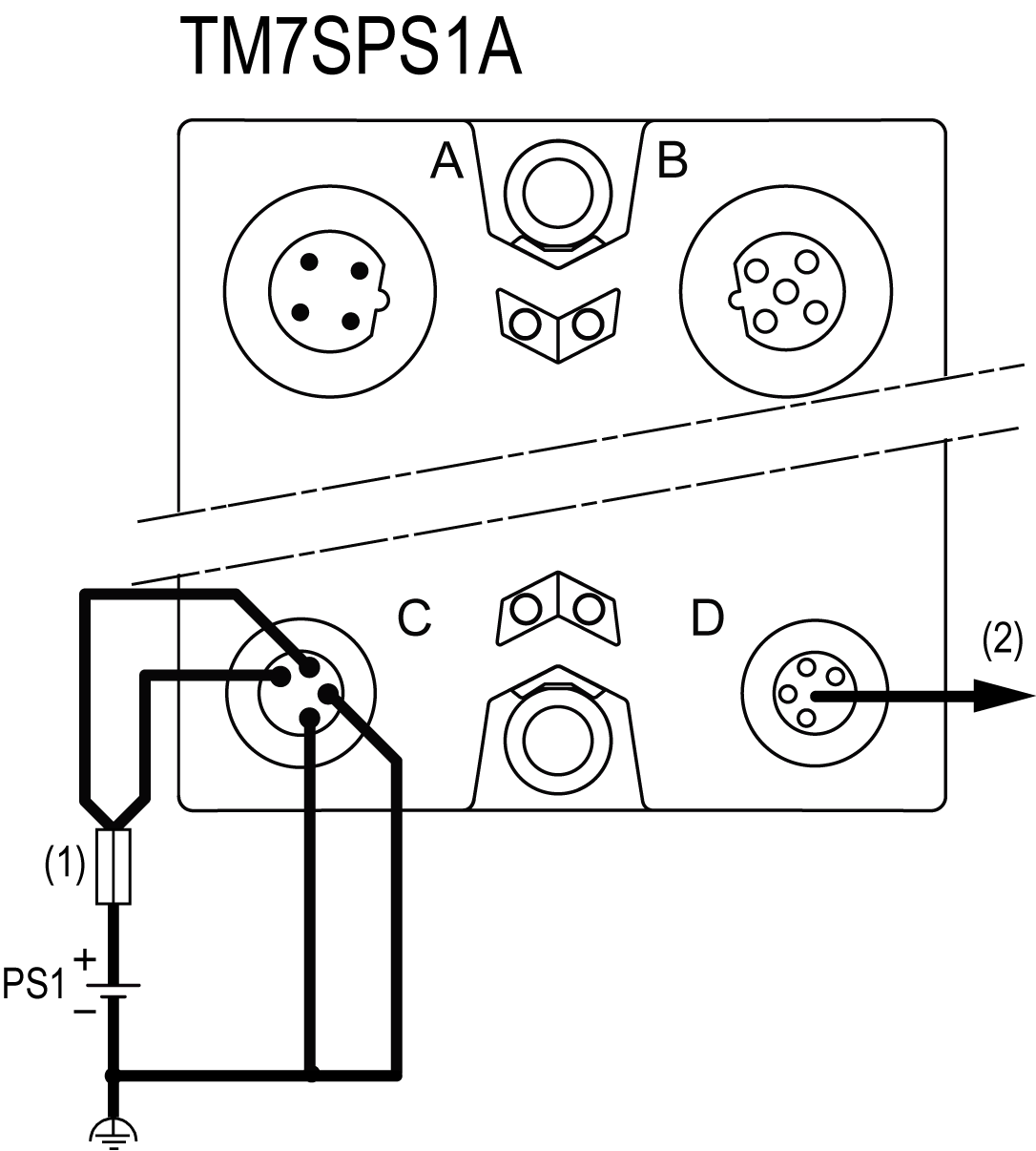 The TM7SPS1A (PDB) reinforces the TM7 power bus. Power is supplied by one external isolated power supply depending on current needs and capabilities.