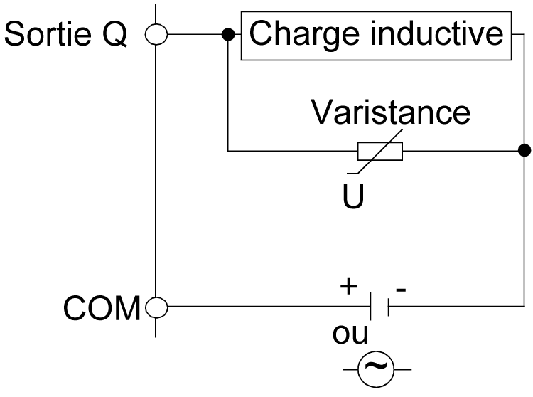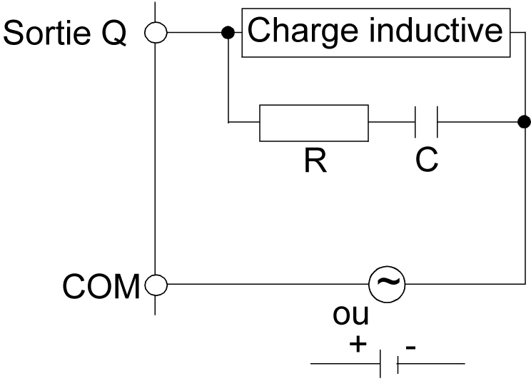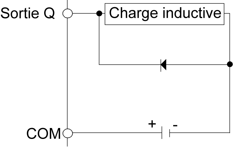 En fonction de la charge, un circuit de protection peut être requis pour les sorties des contrôleurs et de certains modules. Les charges inductives utilisant des tensions CC peuvent créer des réflexions de tension produisant un dépassement endommageant ou réduisant la longévité des dispositifs de sortie.