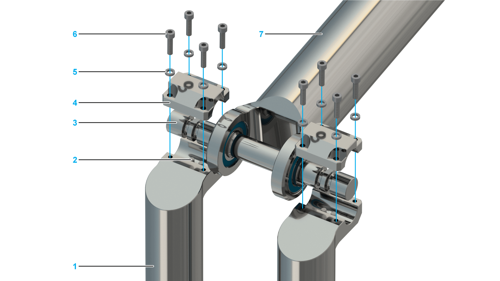Attach the half shell (4) to the lower arm and tighten it with four screws (6) and four lock washers (7). Tightening torque: 4.7 Nm (42 lbf-in) |