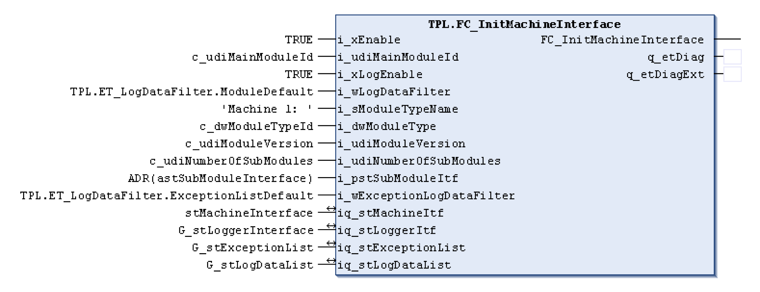 The machine is activated via the i_xEnable input, which activates important POUs of the machine layer such as axis modules, axis module controllers, and module controllers.