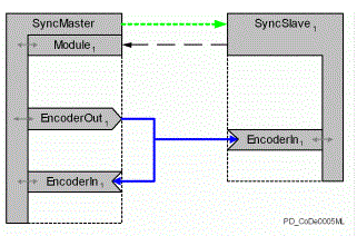 In order to have the encoder signal of the Synchronization encoder output on the Synchronization master with the same time offset (parameter DataDelay) such as the connected Synchronization slaves, it is possible to attach a Synchronization encoder input here also.