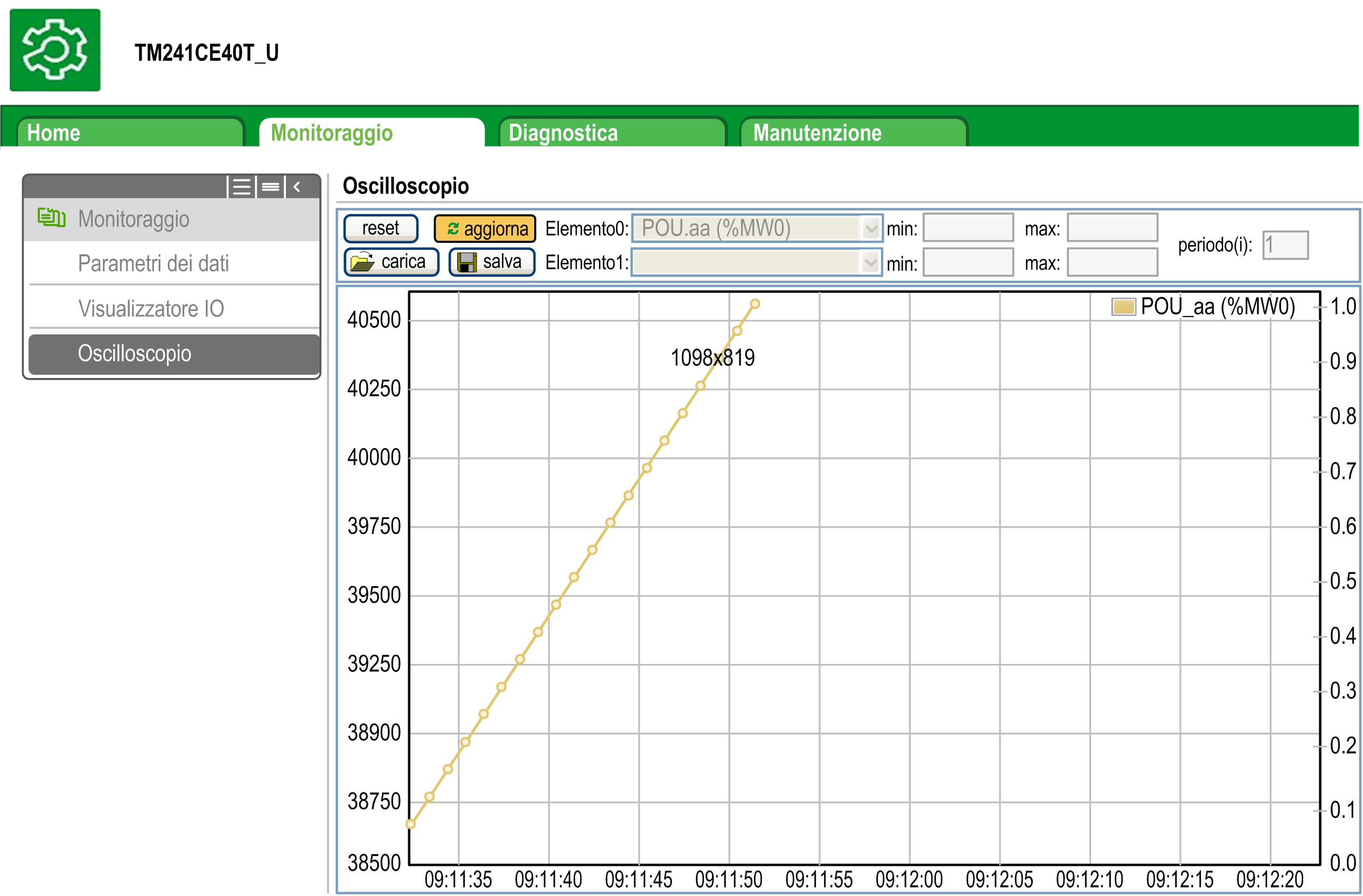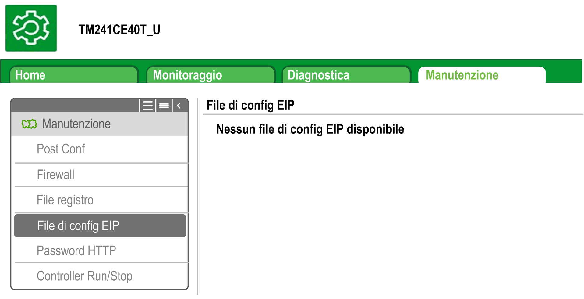 La pagina Maintenance permette di accedere ai dati del controller per operazioni di manutenzione.
