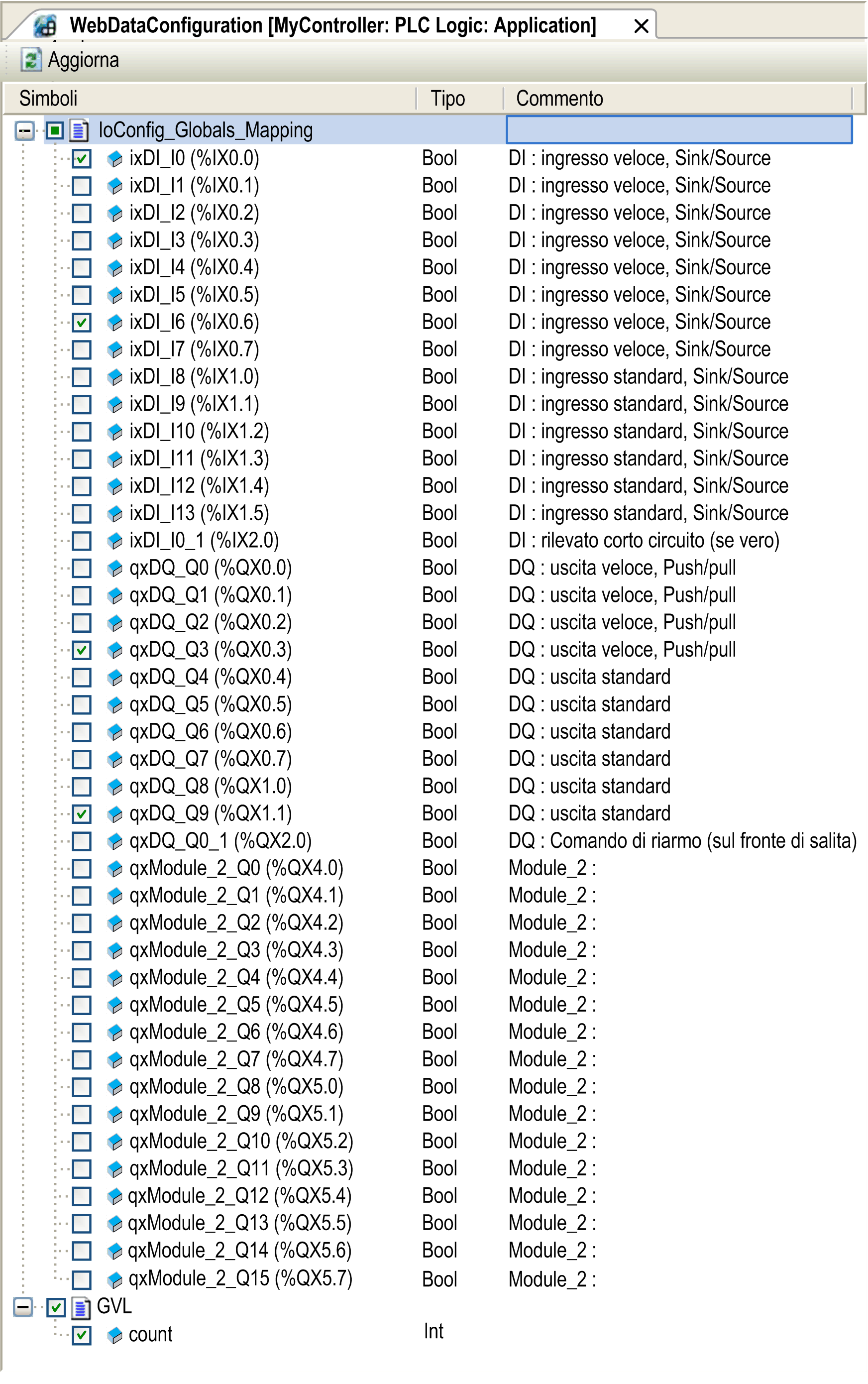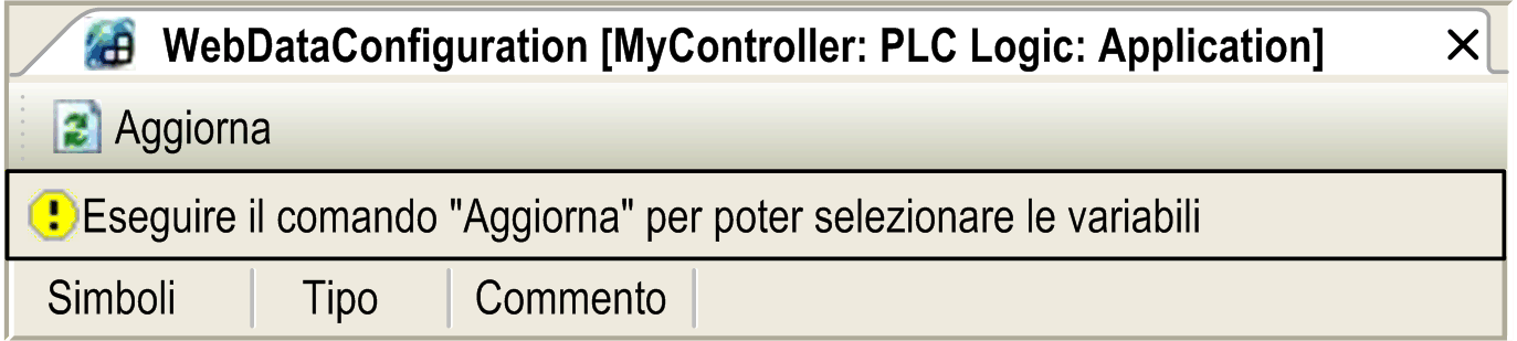 per poter selezionare le variabili, questa azione visualizzerà tutte le variabili definite nell'applicazione.Selezionare le variabili da monitorare nel Server Web: