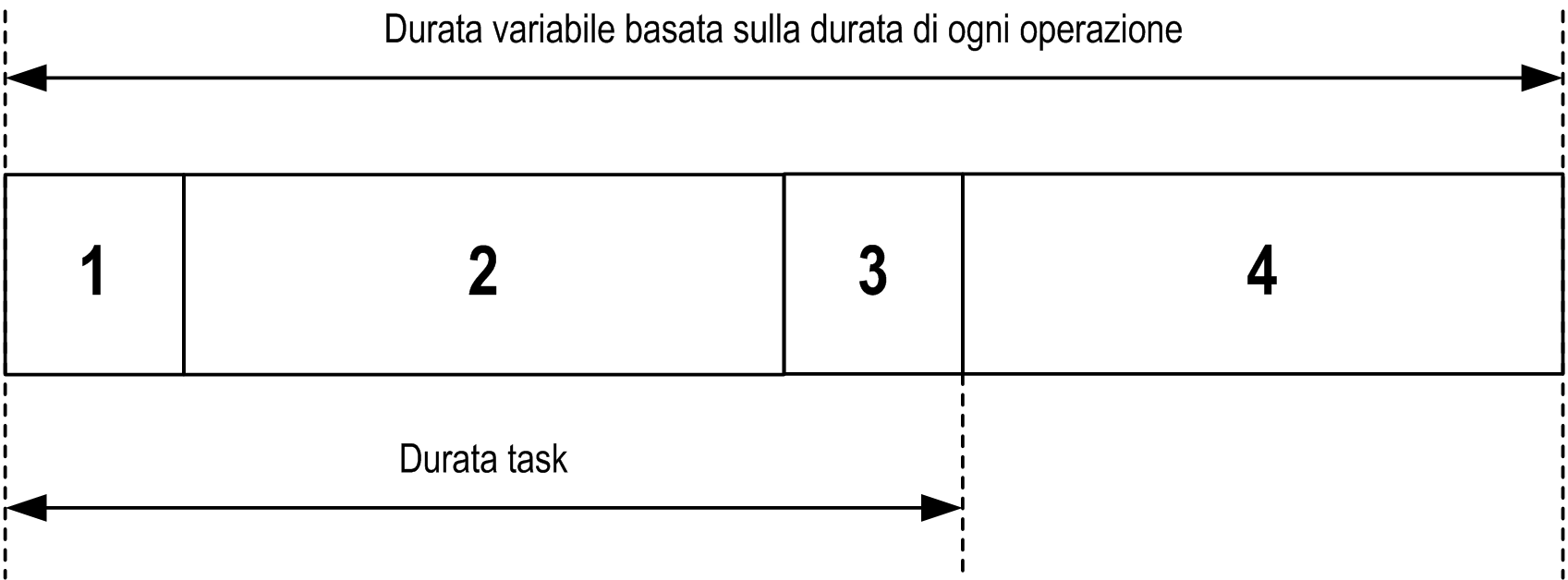 I task a esecuzione libera non hanno una durata fissa. In modalità a esecuzione libera, ciascuna scansione del task inizia quando la scansione precedente è stata completata e dopo un breve periodo di elaborazione del sistema. Ogni tipo di task a esecuzione libera viene eseguito come indicato di seguito: