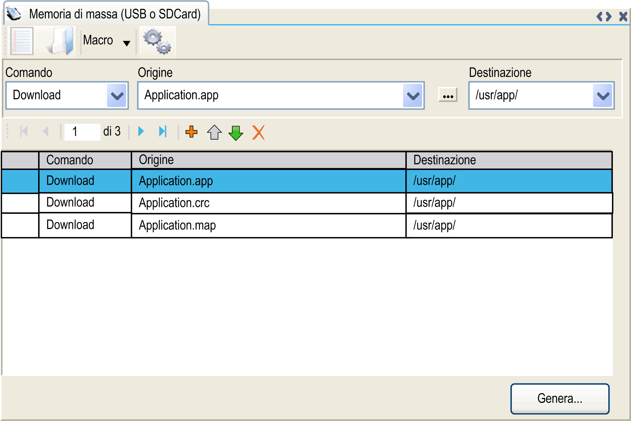 La funzione di clonatura permette di caricare l'applicazione da un controller e di scaricarla solo in un controller dello stesso modello (stesso codice prodotto).