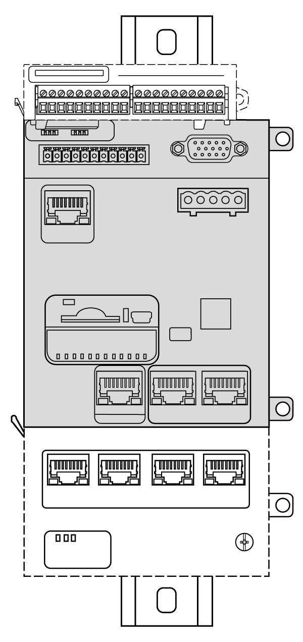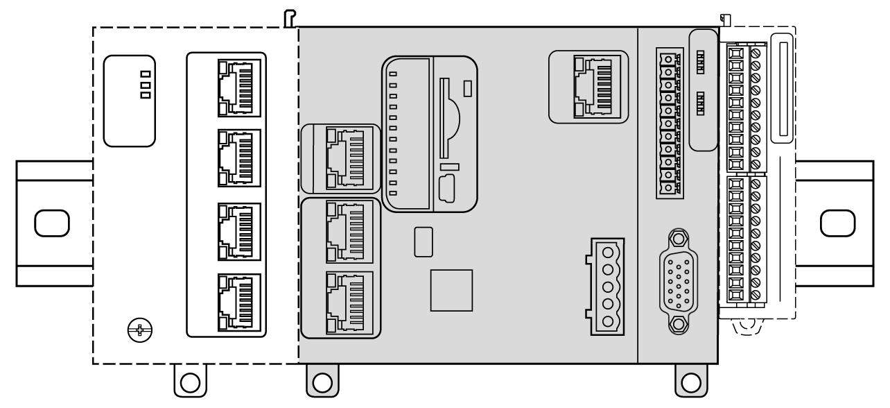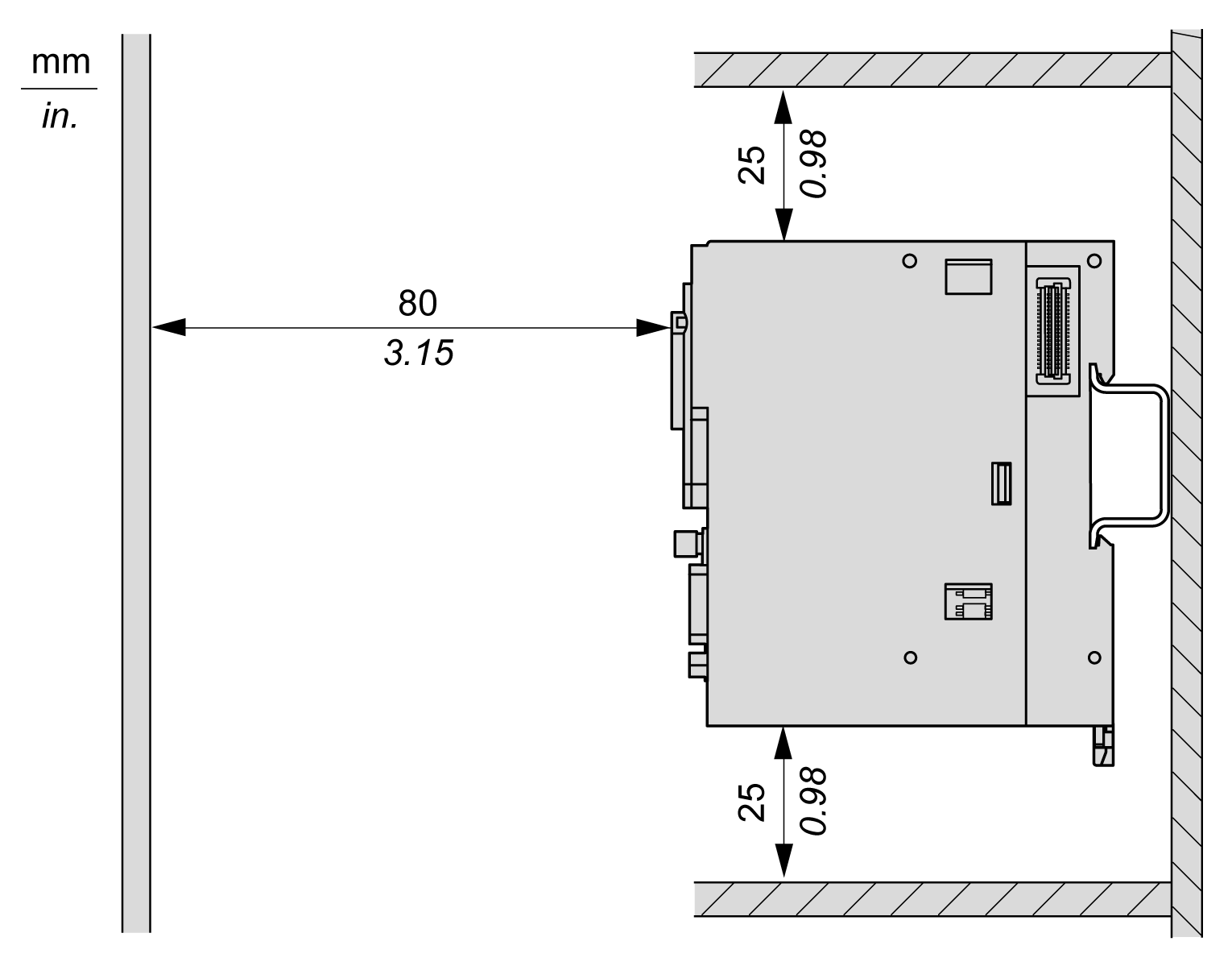 Il M262 Logic/Motion Controller può anche essere montato verticalmente su un piano verticale come illustrato di seguito: