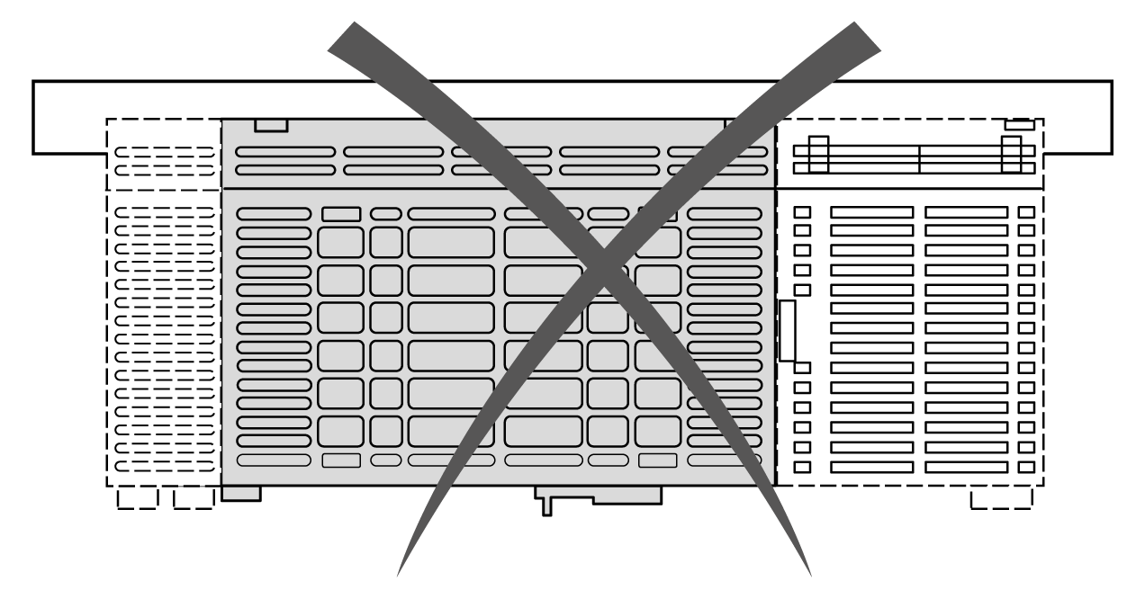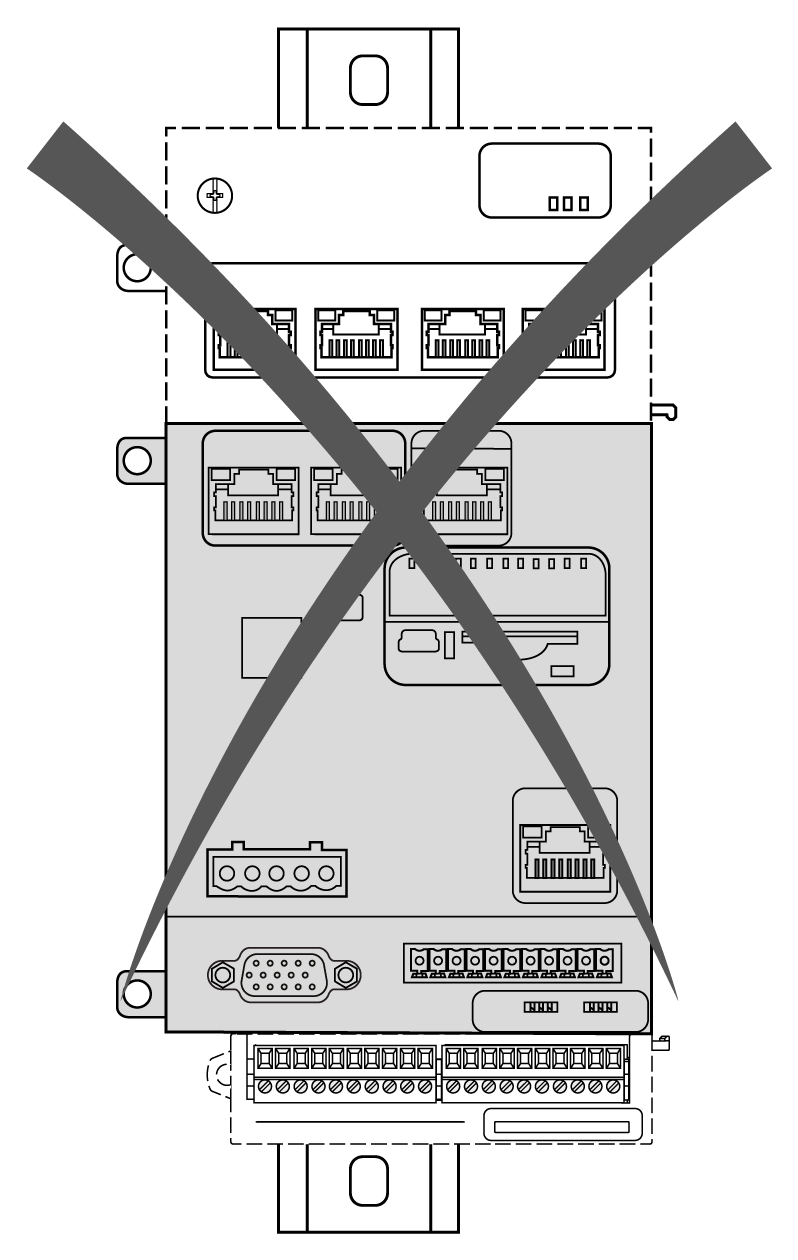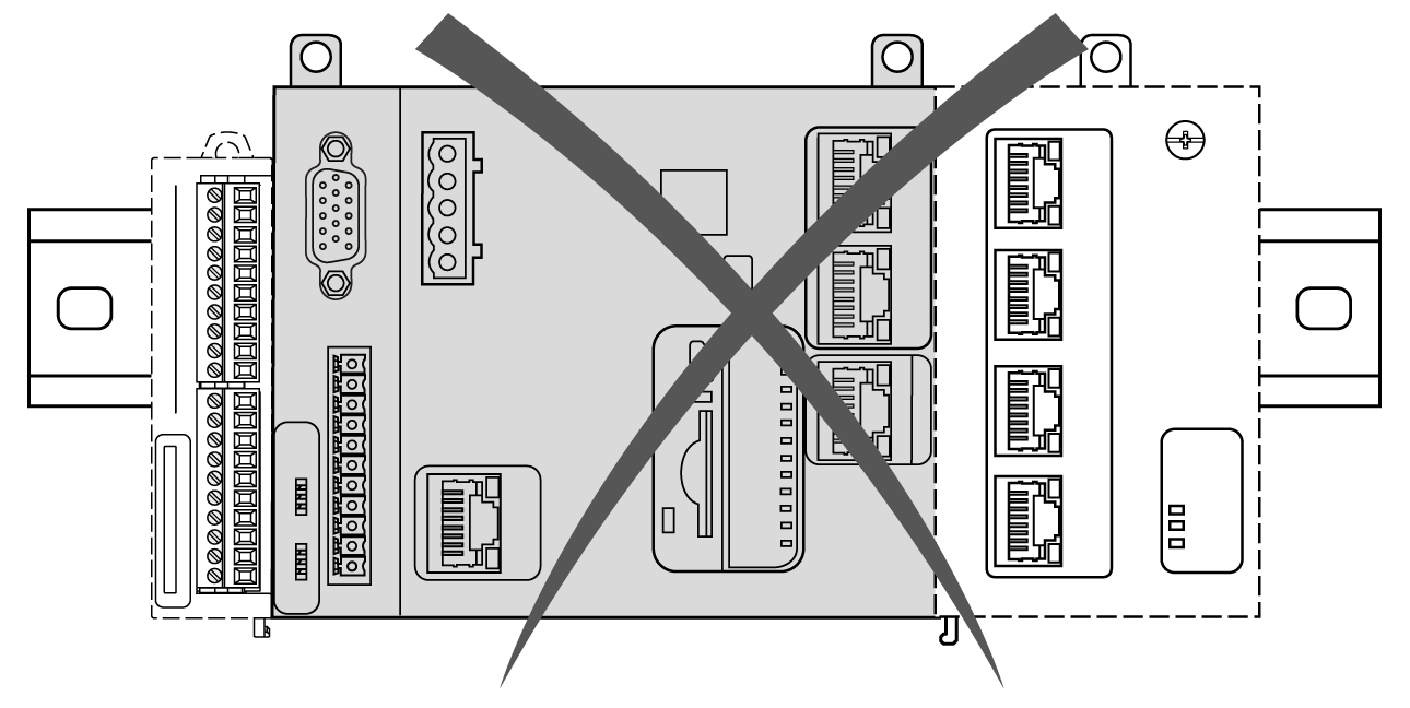 Il M262 Logic/Motion Controller deve essere posizionato come mostrato nelle illustrazioni Posizione di montaggio corretta. Le illustrazioni seguenti mostrano posizioni di montaggio errate: