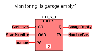 I blocchi di funzione devono essere istanziati. Come le variabili, le istanze devono essere dichiarate prima di poterle inserire nel corpo di codice. Le istanze devono essere uniche nell'ambito della UOP. Nell'esempio è stato usato il nome d'istanza 'CTD_S_1'.