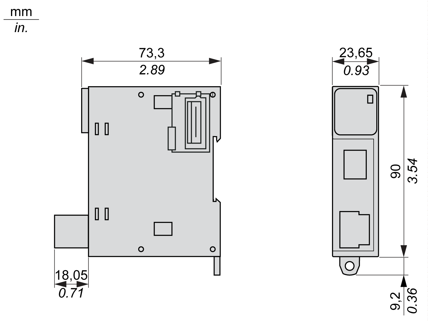 Le figure seguenti mostrano le dimensioni del modulo di espansione TM3XREC1: