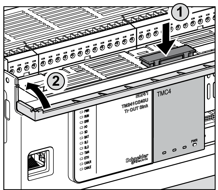 Posizionare il coperchio dello slot della morsettiera nello slot sulla parte superiore del controller e spingerlo a fondo. ![]() |