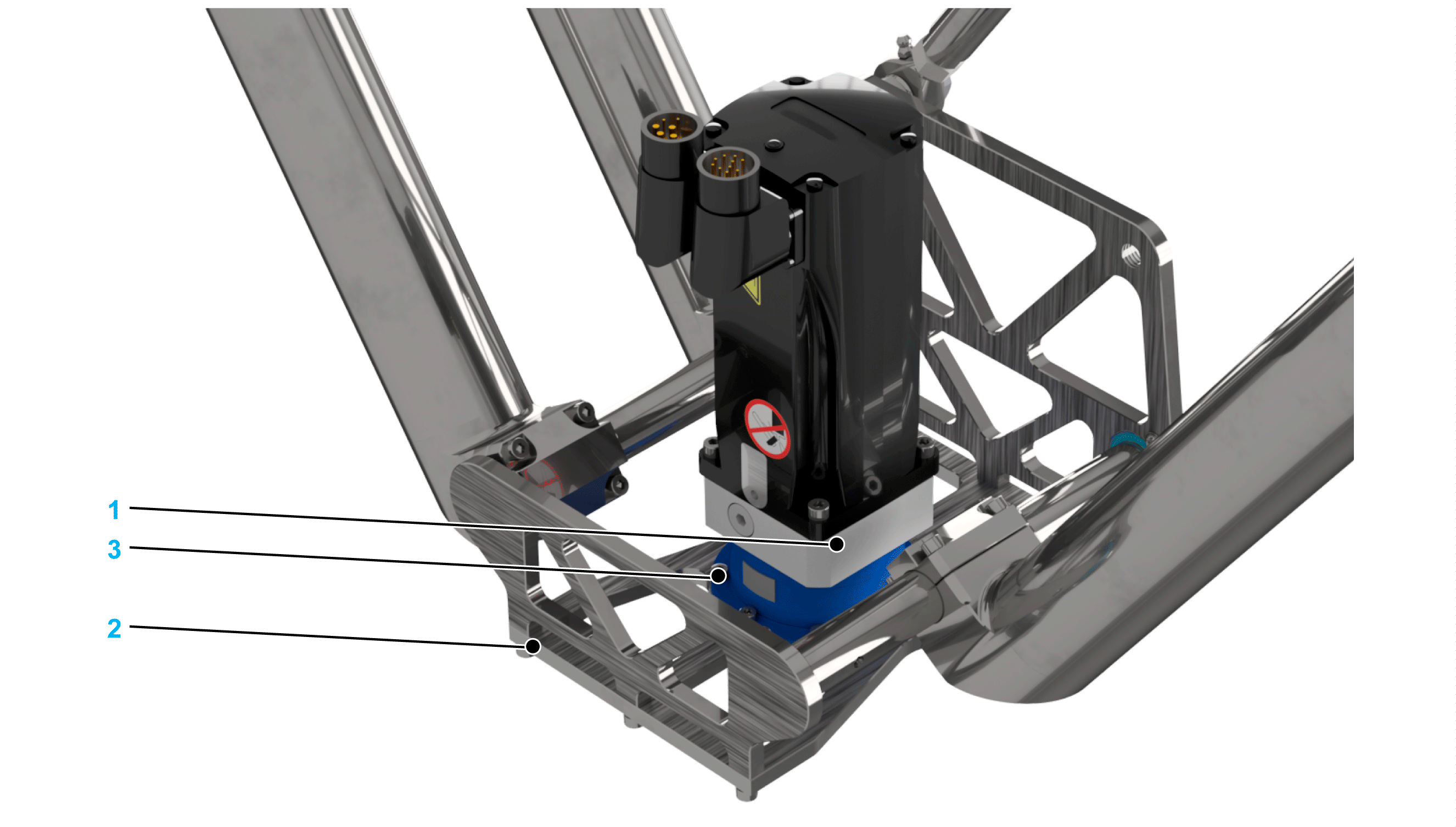 Fasten the gearbox (1) to the mounting points provided for this purpose on the parallel plate (2).