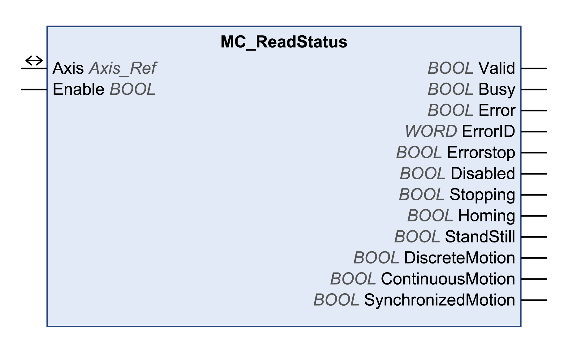 值范围:FALSE,TRUE。 缺省值: FALSE。 输入 Enable 可启动或终止功能块的执行。